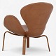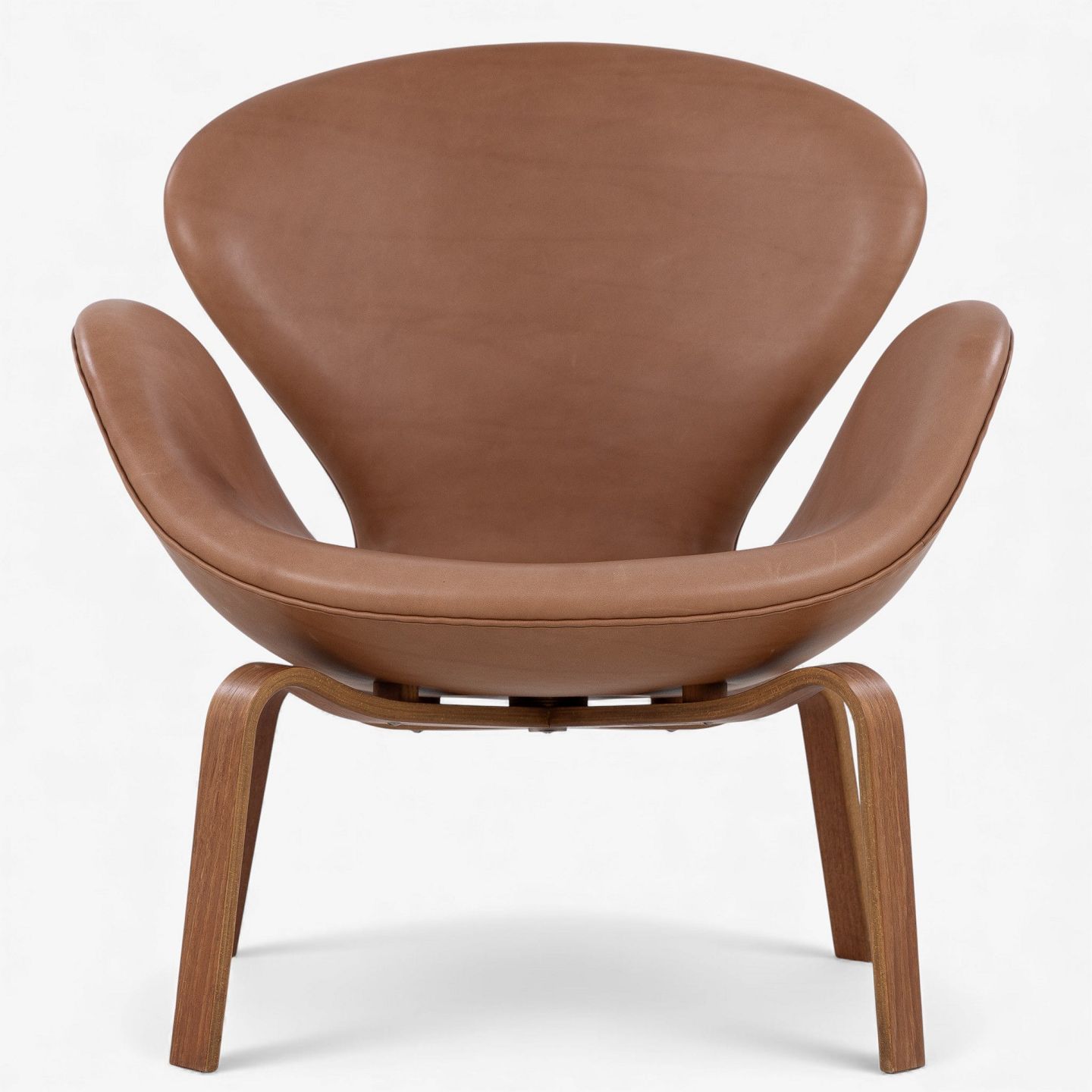 AJ 4325 - 'Svanen'-lænestol i nyere cognac-farvet anilinlæder med stel i træ. Stemplet fra producent.