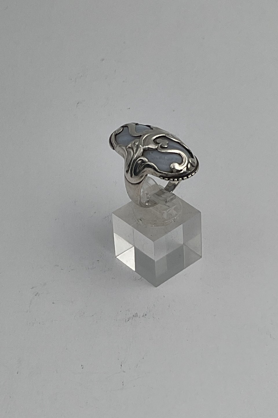 Beskrivelse: Georg Jensen Sterling Sølv Ring No. 18 m Chalcedon sten. Moonlight Blossom Ringstørrelse 57 / US 8