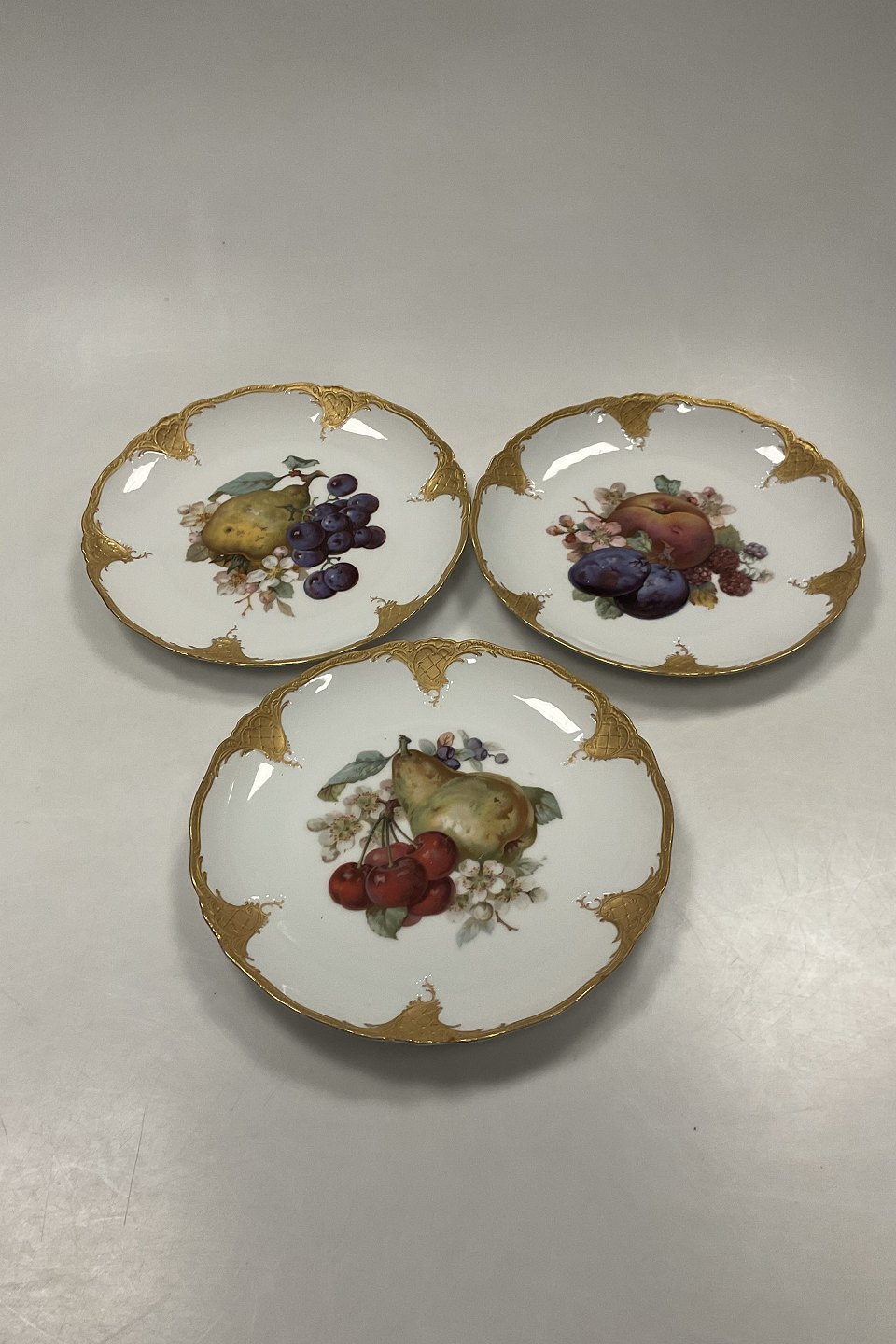 Sæt på 12 Tyske Furstenberg Frugttallerkener i overglasur og guld