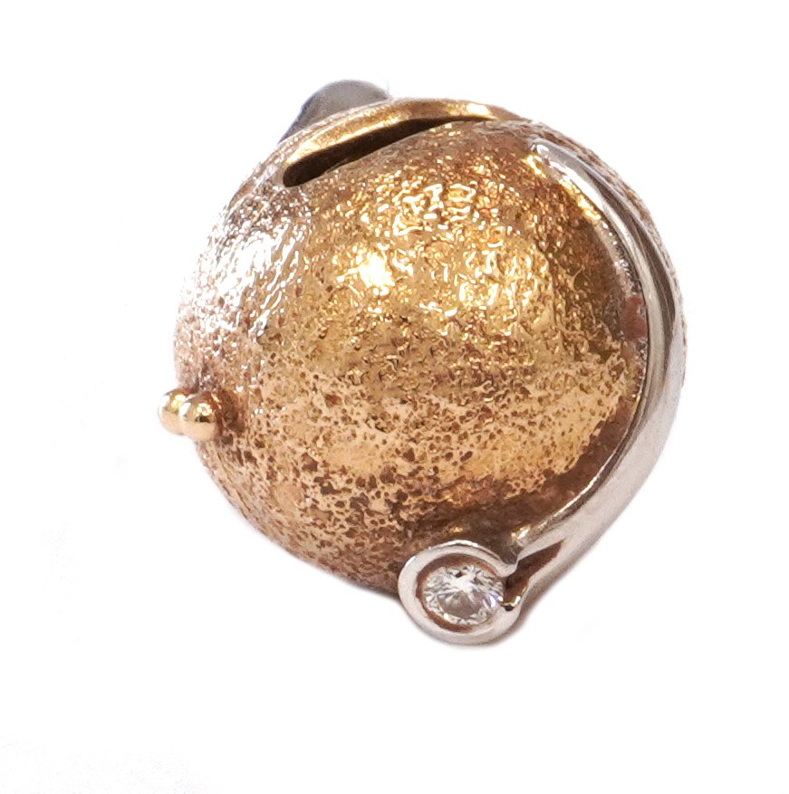 An Ole Lynggaard, Copenhagen, 14kt gold clasp with two diamonds. D: 14mm