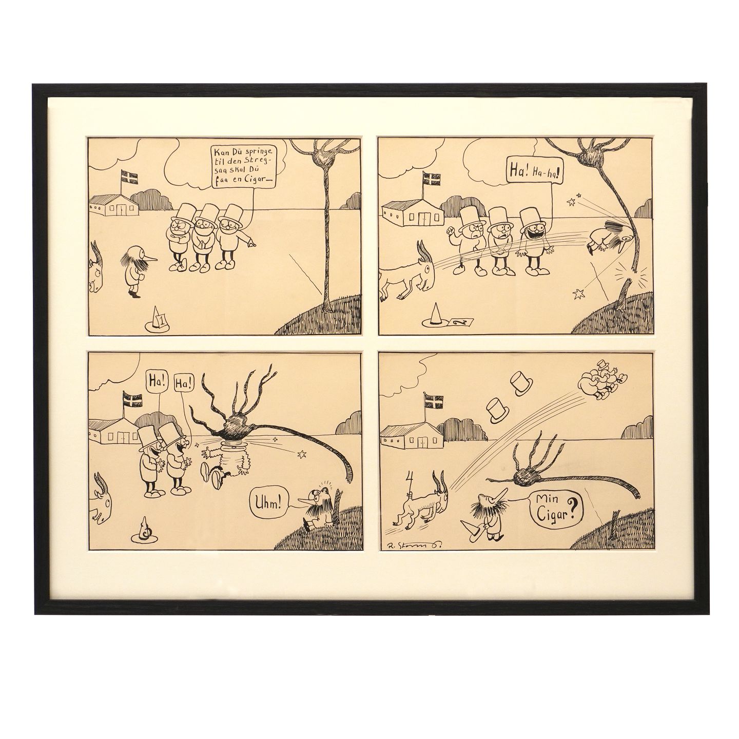 Robert Storm Petersen, 1882-1949. Four original drawings, ink & pencil, 1913-16. Size with frame: 52x65cm