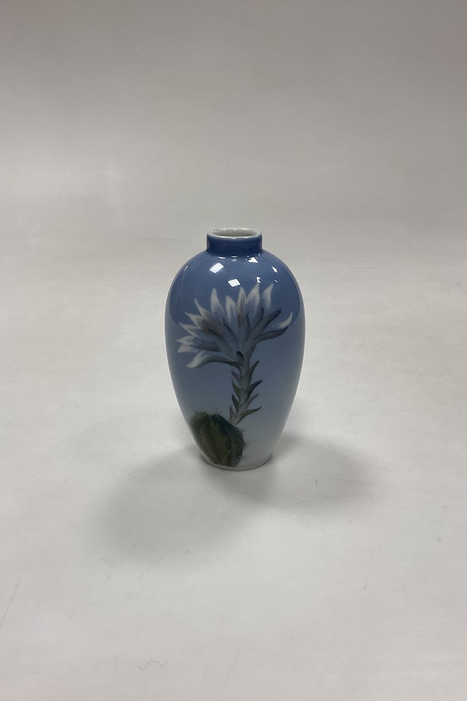Beskrivelse: Royal Copenhagen Art Nouveau Lille Vase med Kaktus No. 2672/47A. Måler 11 cm / 4,33 in.