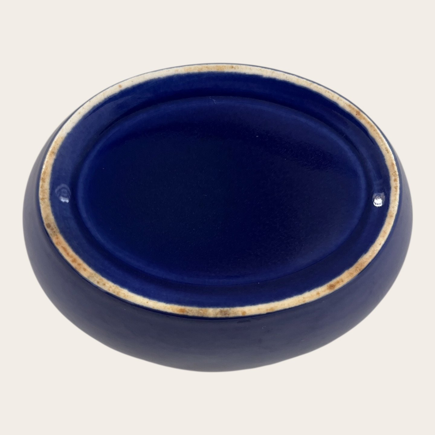 Beskrivelse: Royal Copenhagen, Aluminia, Ursula, Oval skål, Blå #571, 10,5cm lang, 8cm bred, 6cm høj, Design Ursula Munch Petersen *Pæn stand*