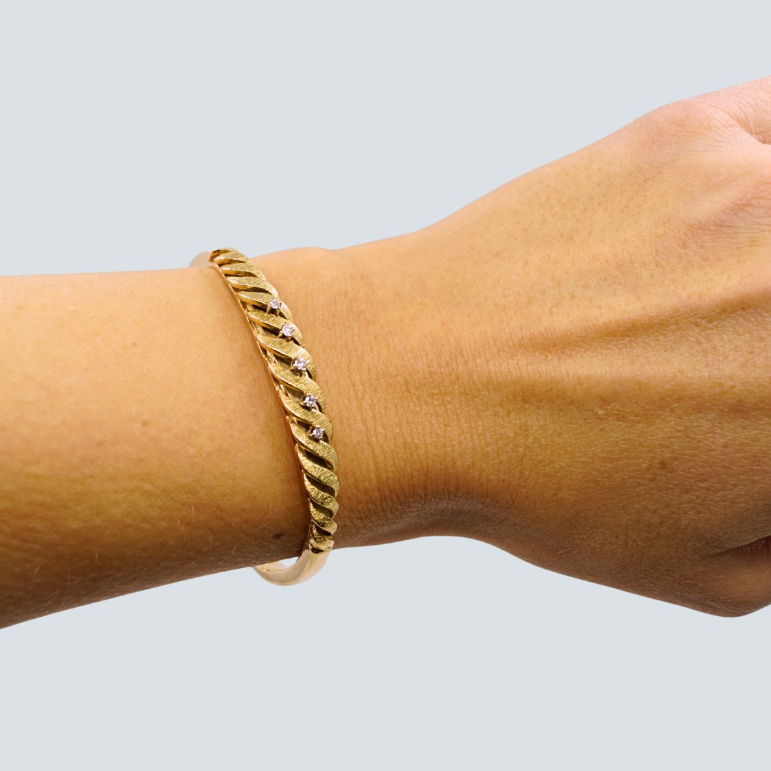 Armring i 14 kt. guld prydet med fem diamanter