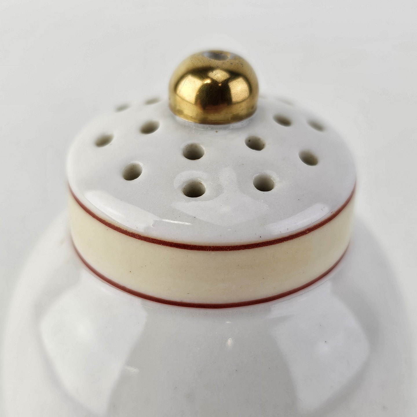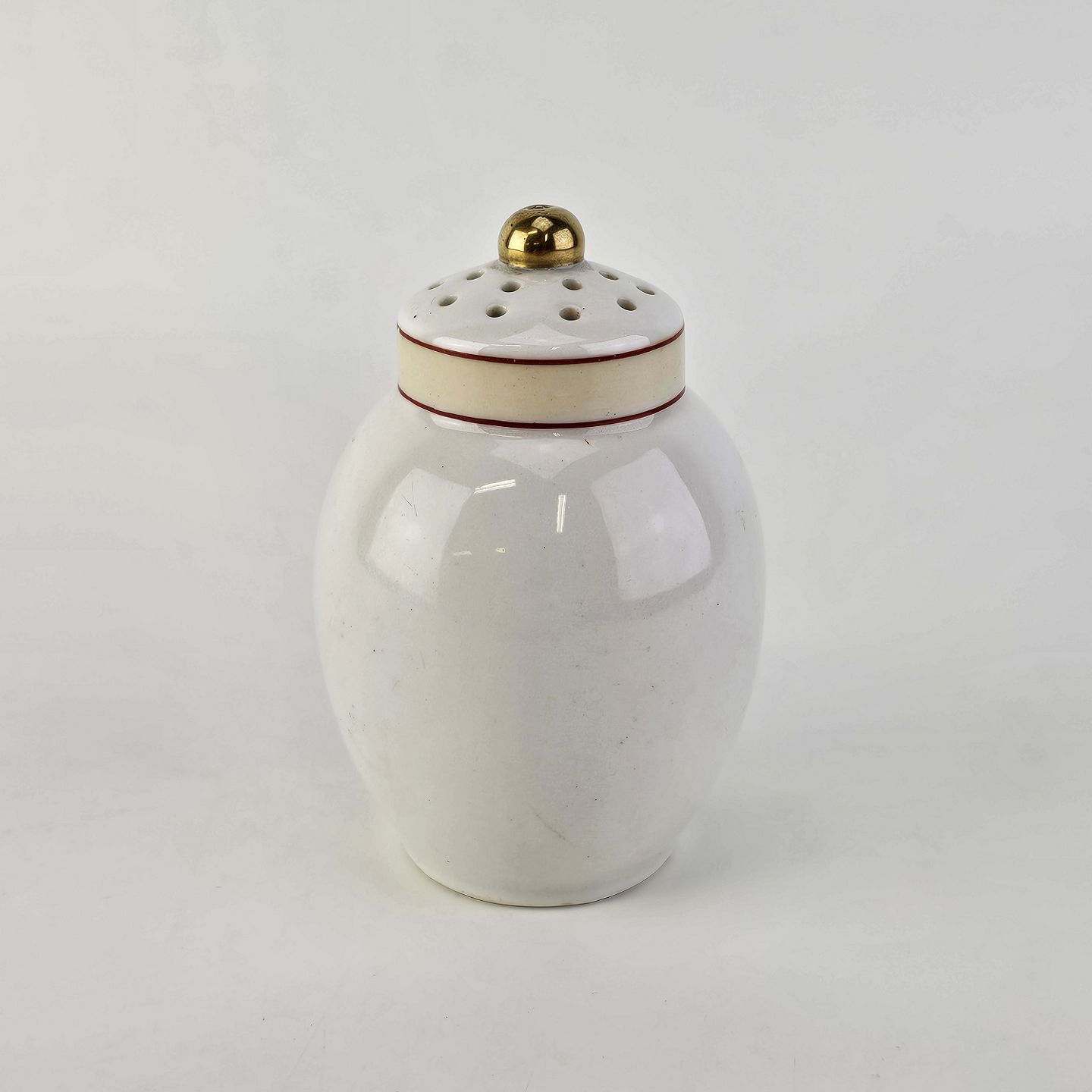Beskrivelse: Saltbøsse eller peberbøsse i kongeligt porcelæn fra stellet Det spanske stel. Prop medfølger.