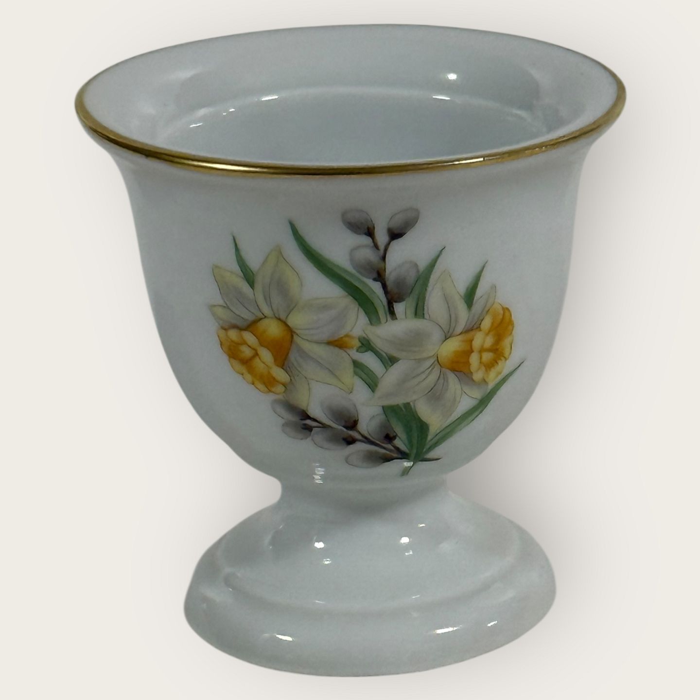 Beskrivelse: Bing & Grøndahl, Æggebæger med pinseliljer og pilegrene, Højde 5,8cm *pæn stand*