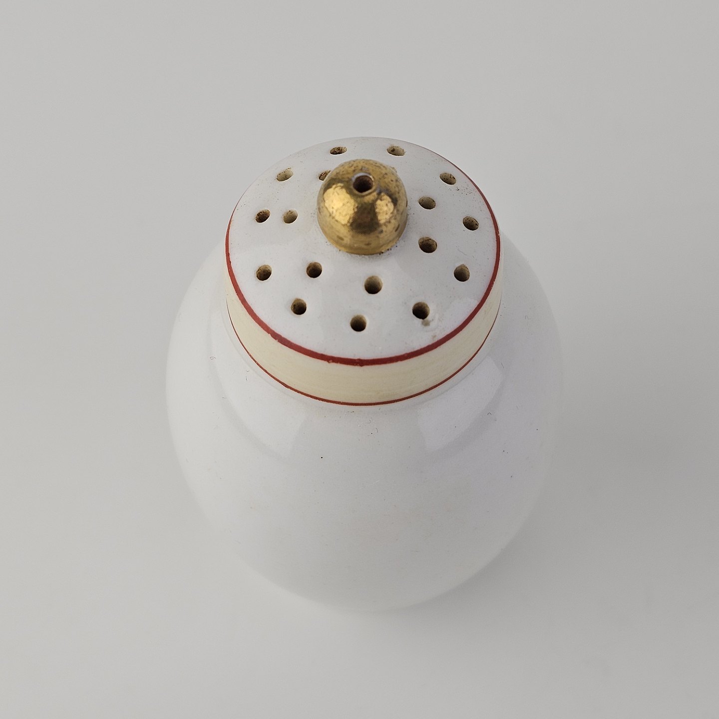 Beskrivelse: Saltbøsse eller peberbøsse i kongeligt porcelæn fra stellet Det spanske stel. Mangler prop