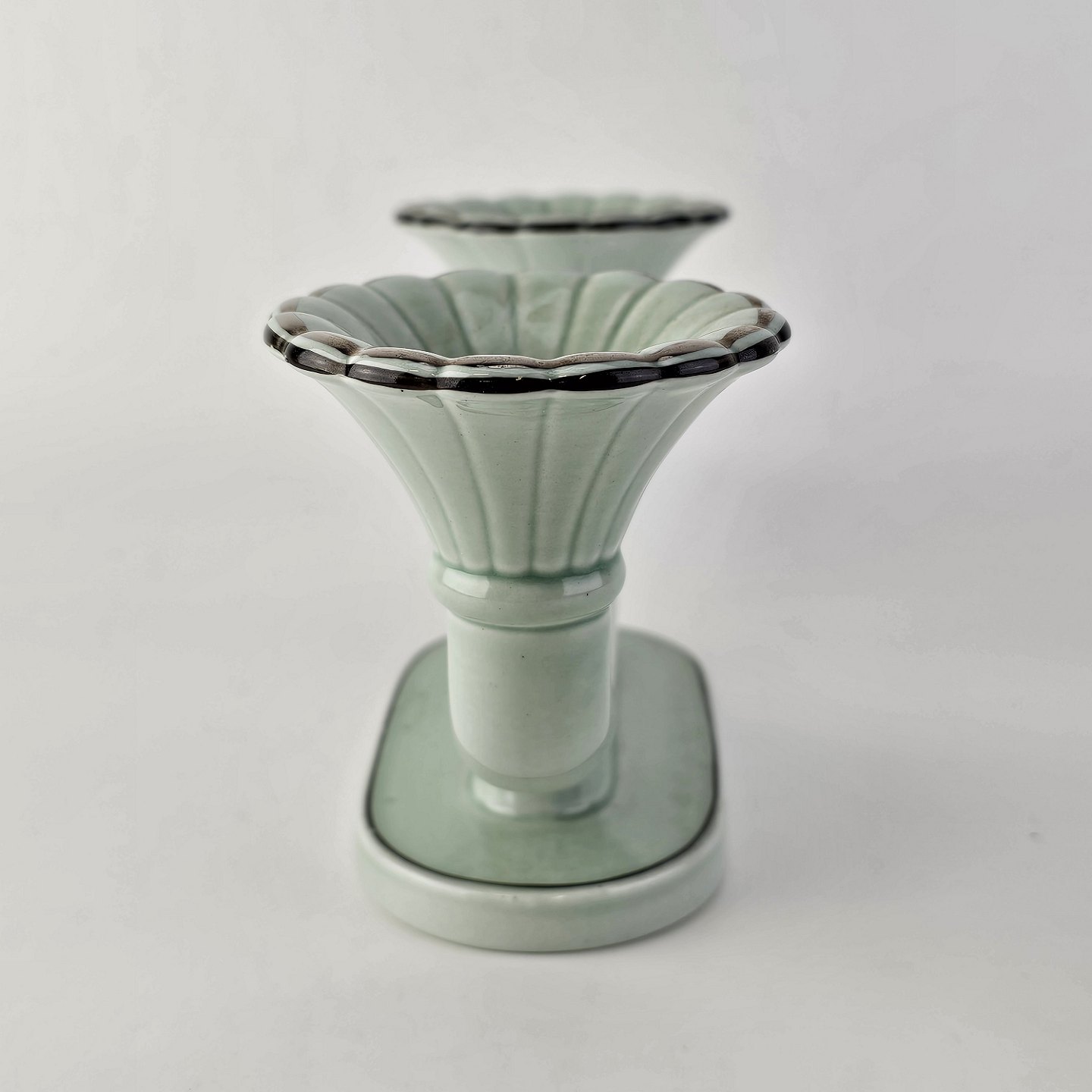 Stel i lysegrøn fajance med natur dekoration og flettet kant