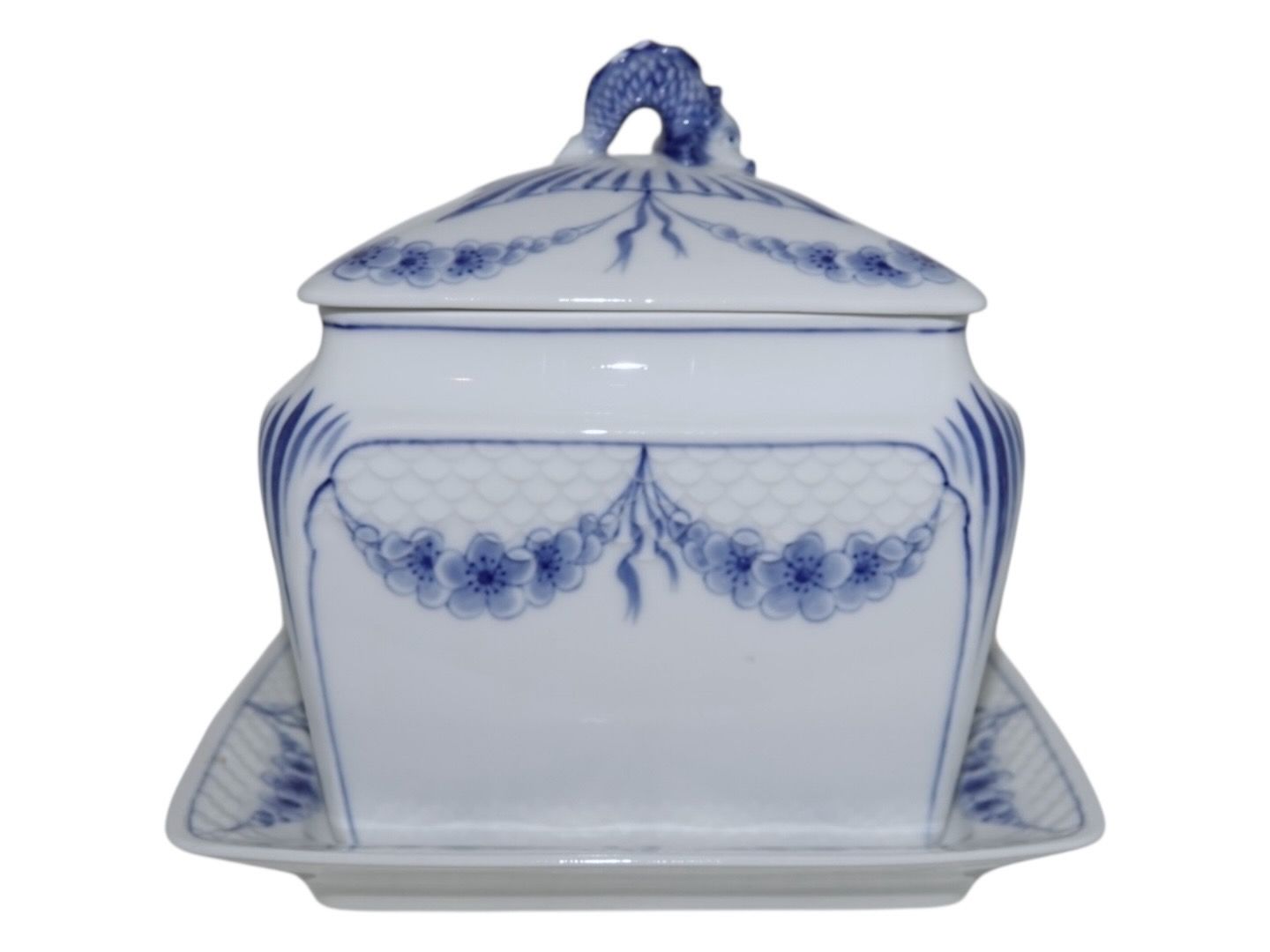 Beskrivelse: Bing & Grøndahl Empire, sjælden kiksespand med tilhørende underfad.
