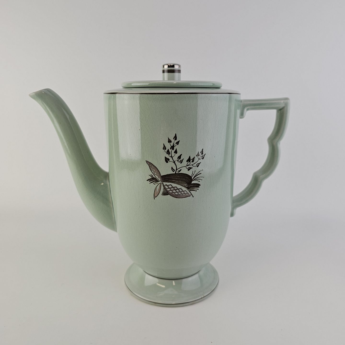 Beskrivelse: Kaffekande med låg i fajance fra stellet Saltholm