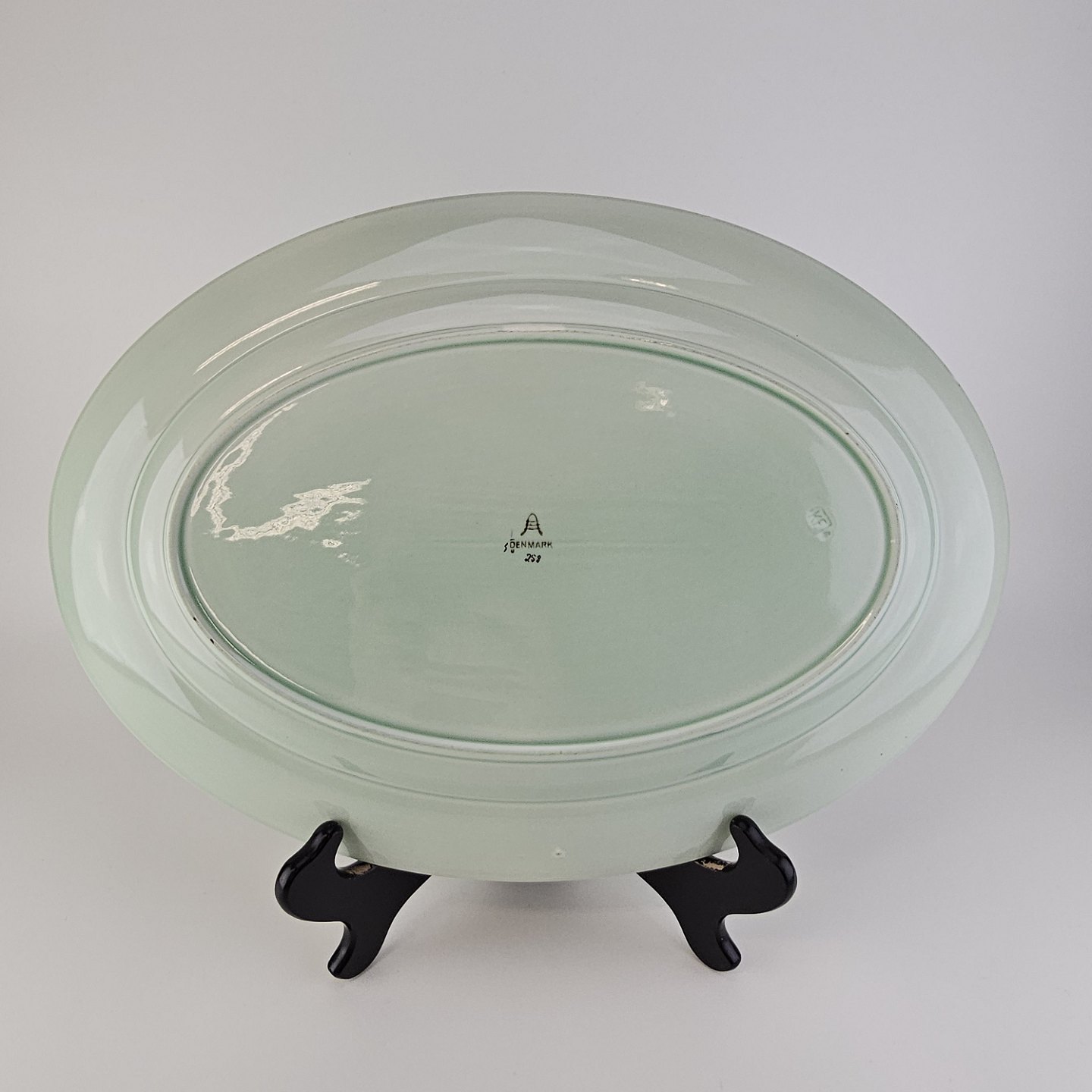 Beskrivelse: Ovalt fad i fajance fra stellet Saltholm