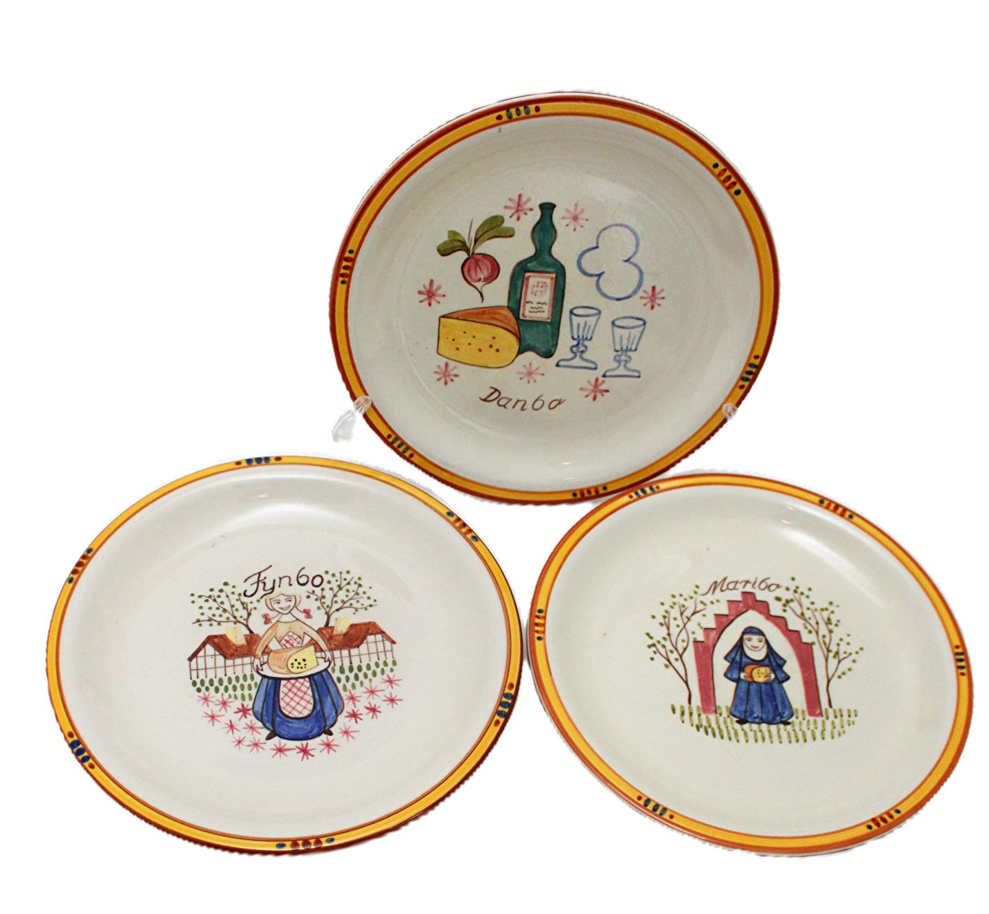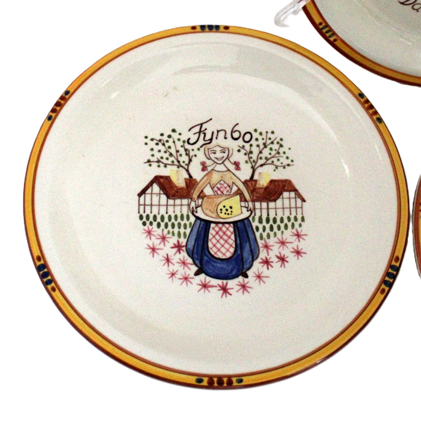 Beskrivelse: Knabstrup, Ostestellet. Formgivet af Johannes Hansen i 1959 og dekoreret af Paul Høyrup. Motiv og navn for de forskellige danske ostetyper, Fynbo, Molbo, Danbo, Maribo, Esrum og Samsø.