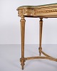 Beskrivelse: Antik skrivebord 1850’erne i gustaviansk/Louis XVI stil, forgyldt træ, glasbordplade og skuffe.