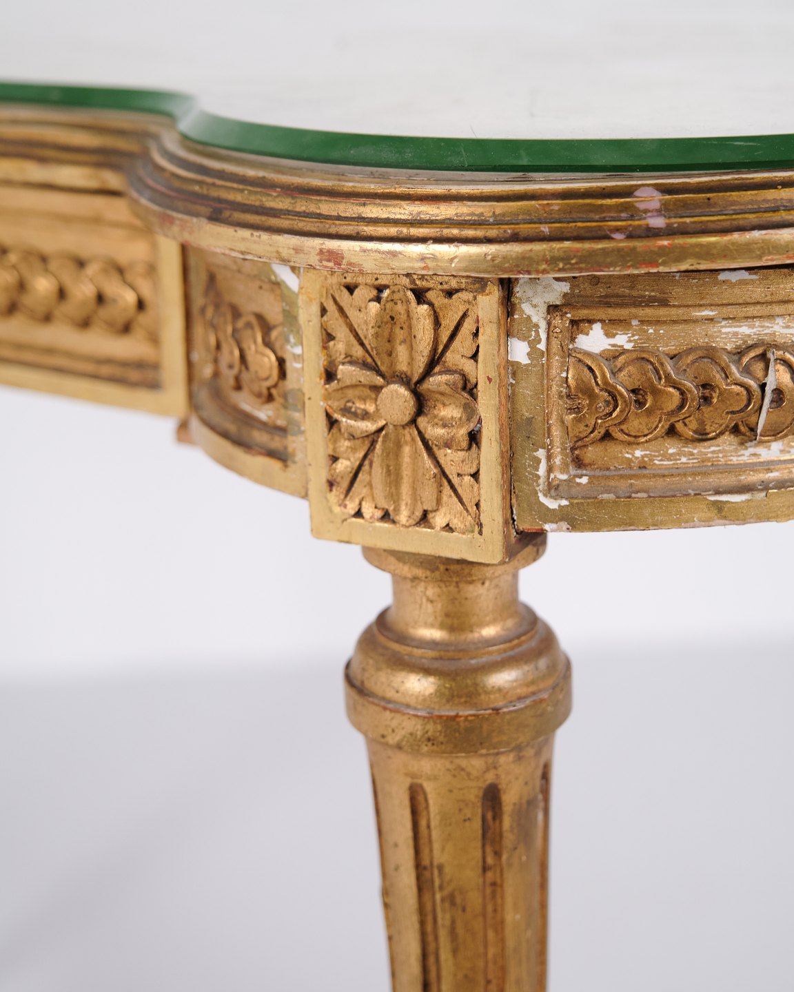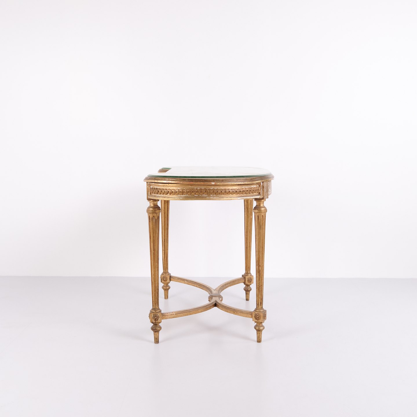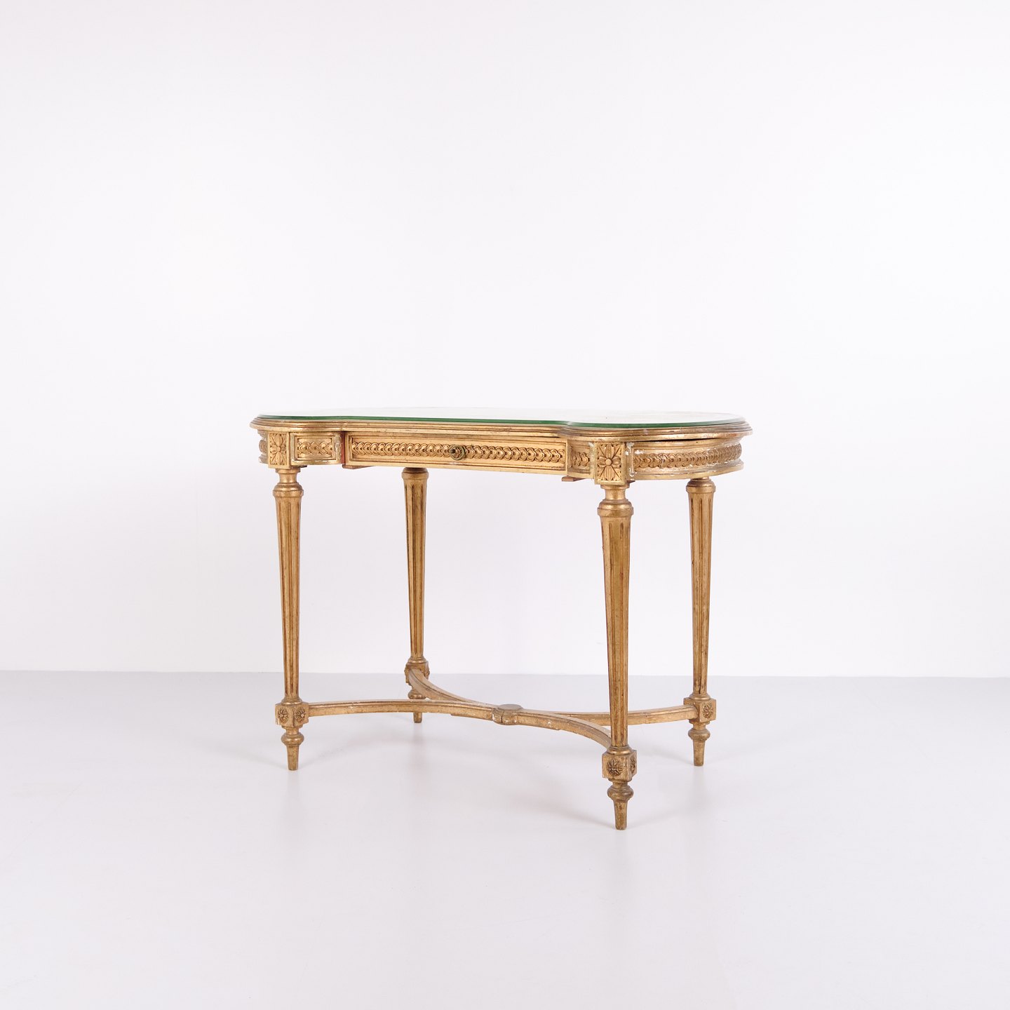 Antik Skrivebord Med Glasbordplade & Skuffe – Gustaviansk/Louis XVI-stil – Forgyldt Træ – År 1850erne