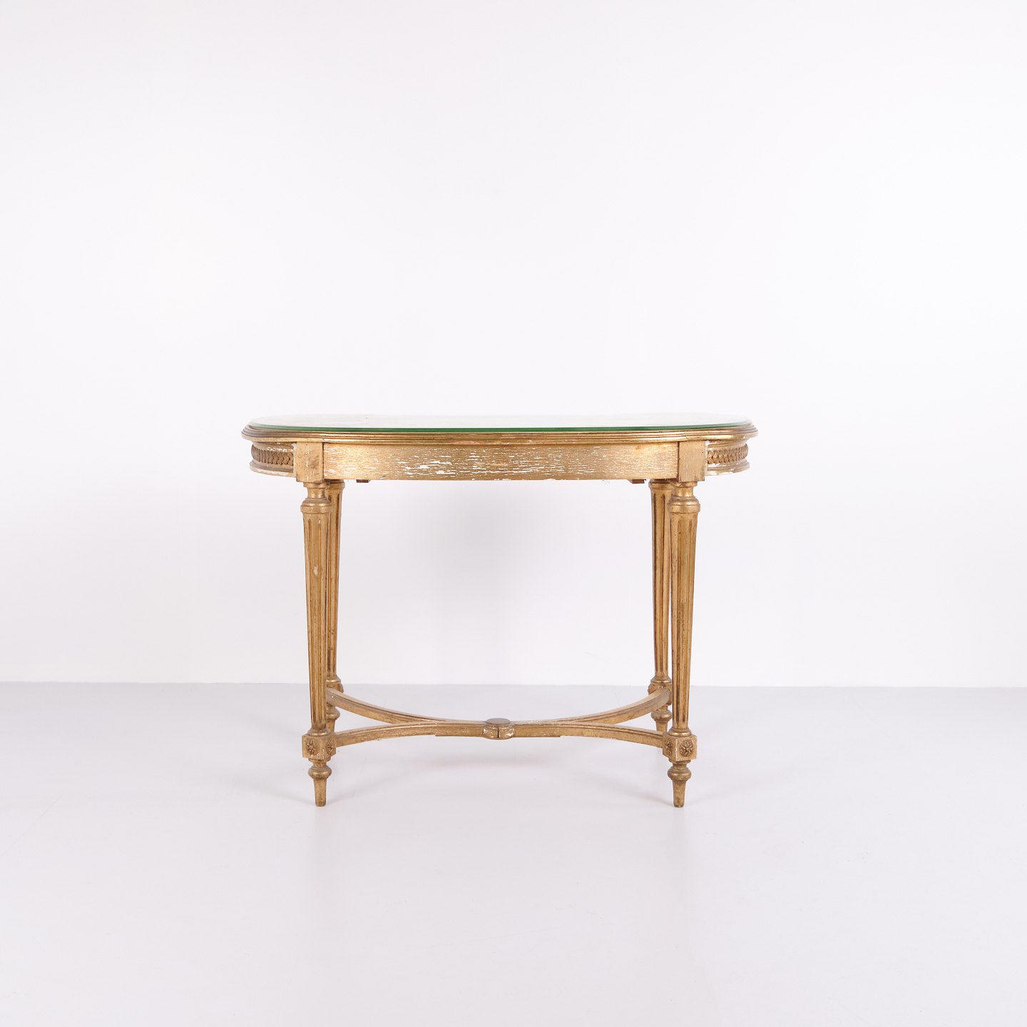 — Materiale: Forgyldt træ med glasbordplade
