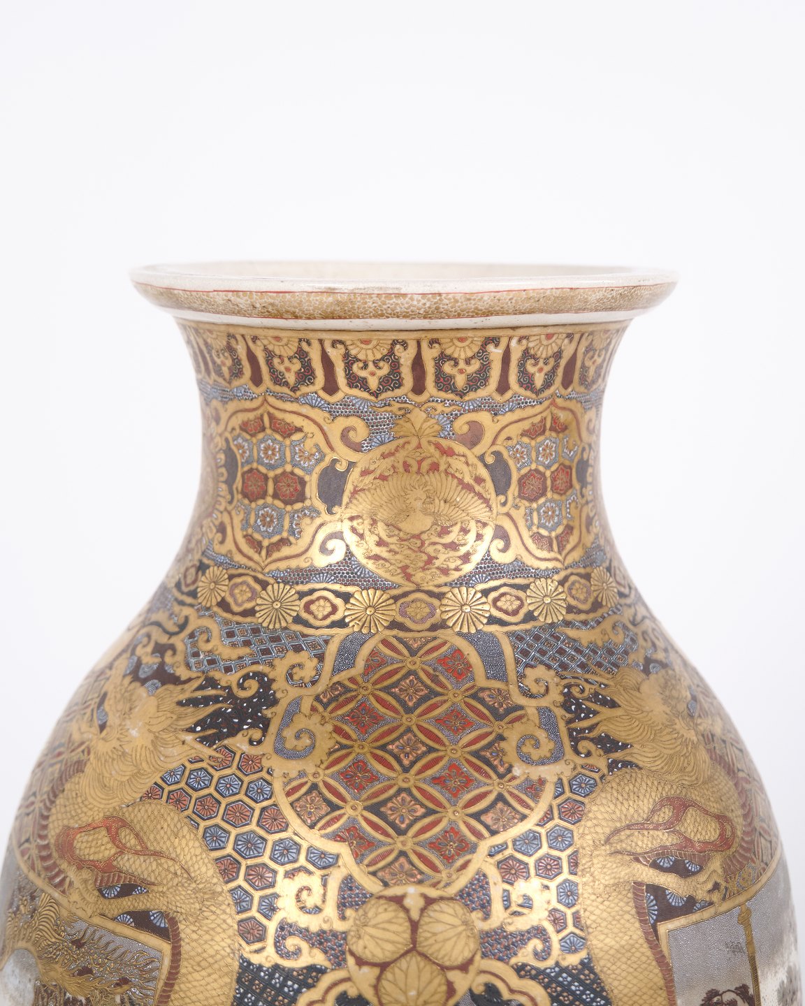 Beskrivelse: Store japanske satsuma-vaser fra Meiji-perioden (1868–1912) i håndmalet porcelæn. Sjældent par satsuma vase Japan 1800-tallet.