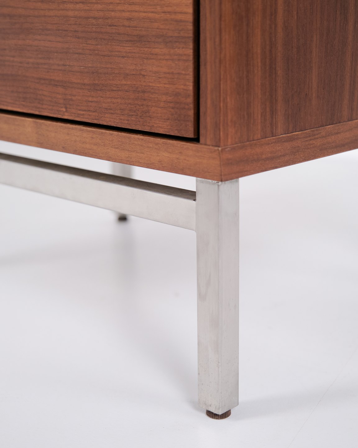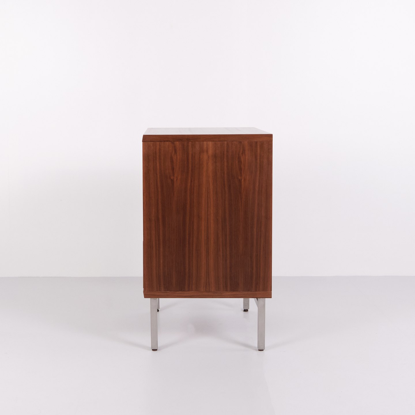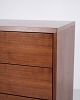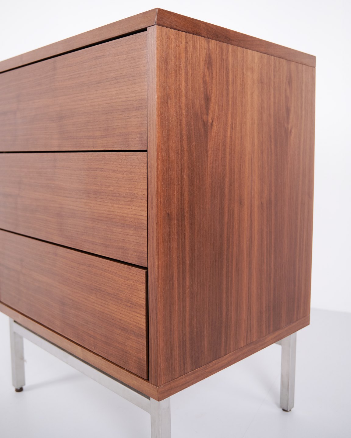 Beskrivelse: Skovby kommode i valnød med 3 skuffer og metalben. Moderne dansk møbel fra Skovby Møbelfabrik.