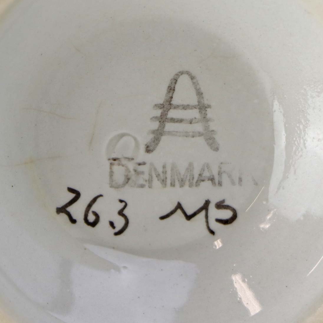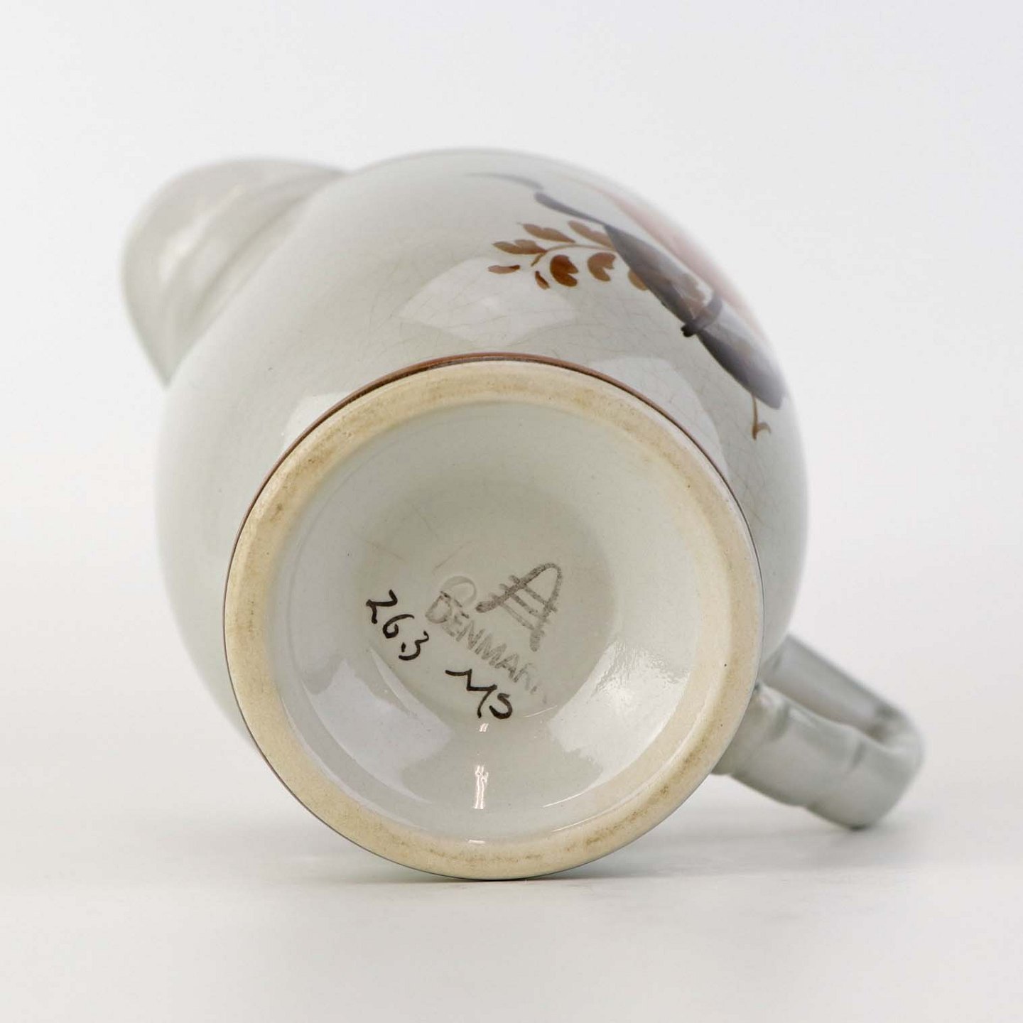 Beskrivelse: Kande til fløde i fajance fra stellet Kirsten, som blev fremstillet i perioden 1934-1957. Nr. 263