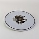Beskrivelse: Rund smørbrik i fajance med ophæng fra stellet Brun Tranquebar fra år 1919. Nr 45/1403