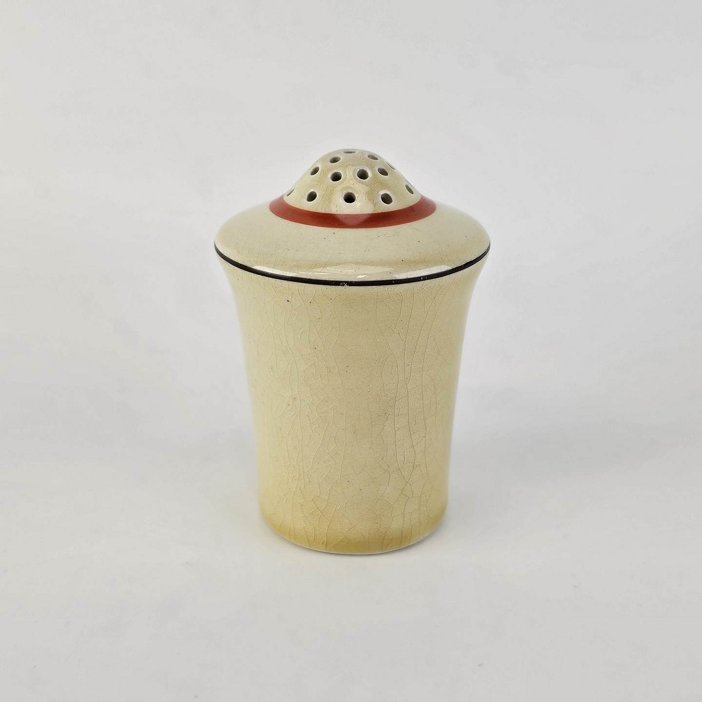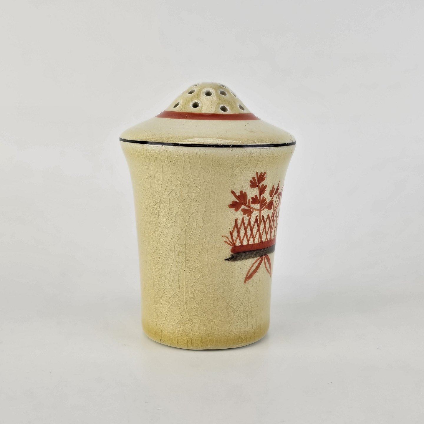Beskrivelse: Saltbøsse eller peberbøsse i fajance fra stellet Mariager