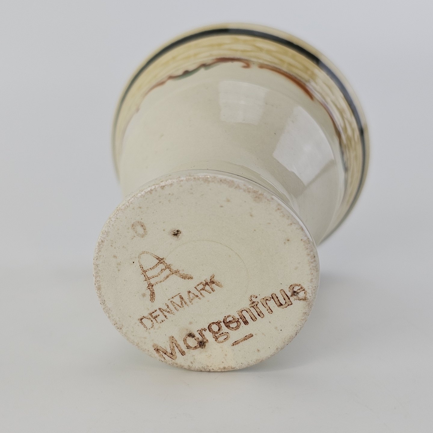 Beskrivelse: Æggebæger i fajance fra stellet Morgenfrue