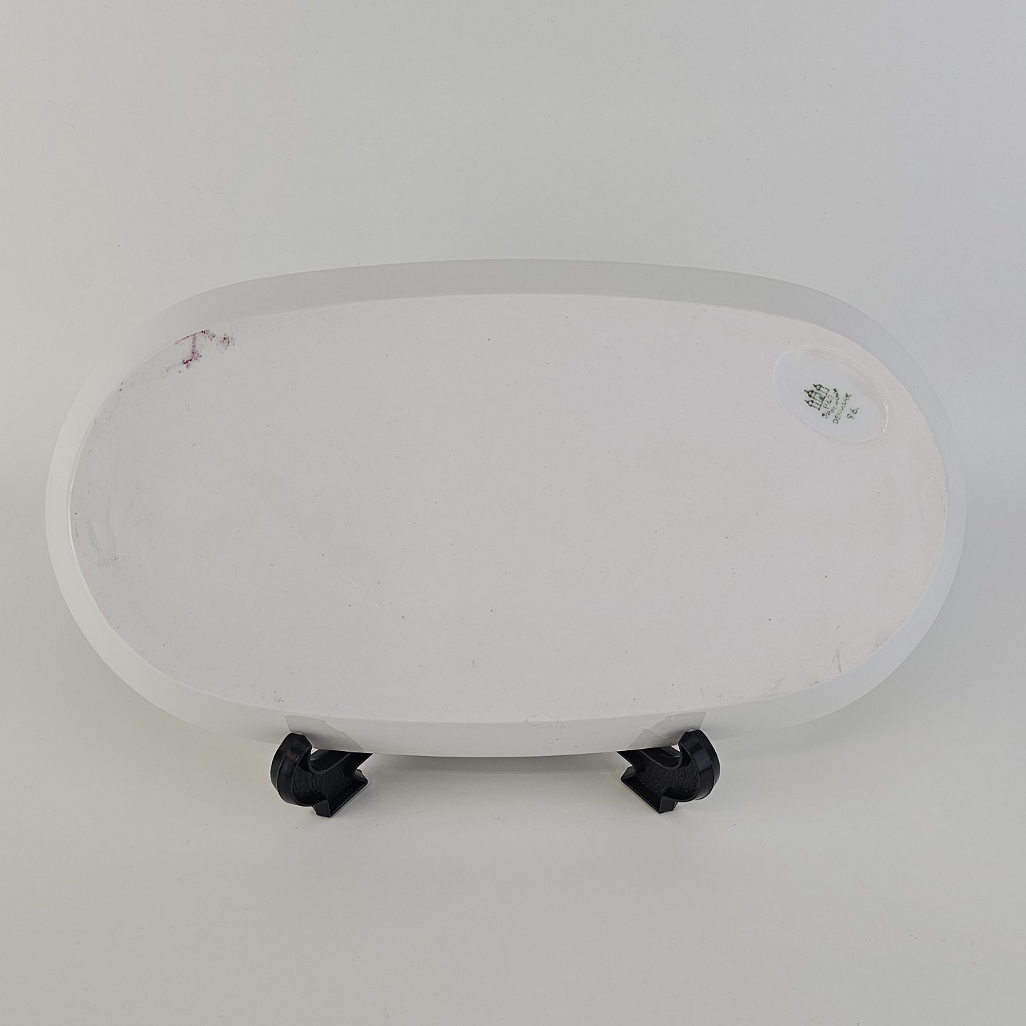 Beskrivelse: Aflangt fad i porcelæn fra stellet Tiber