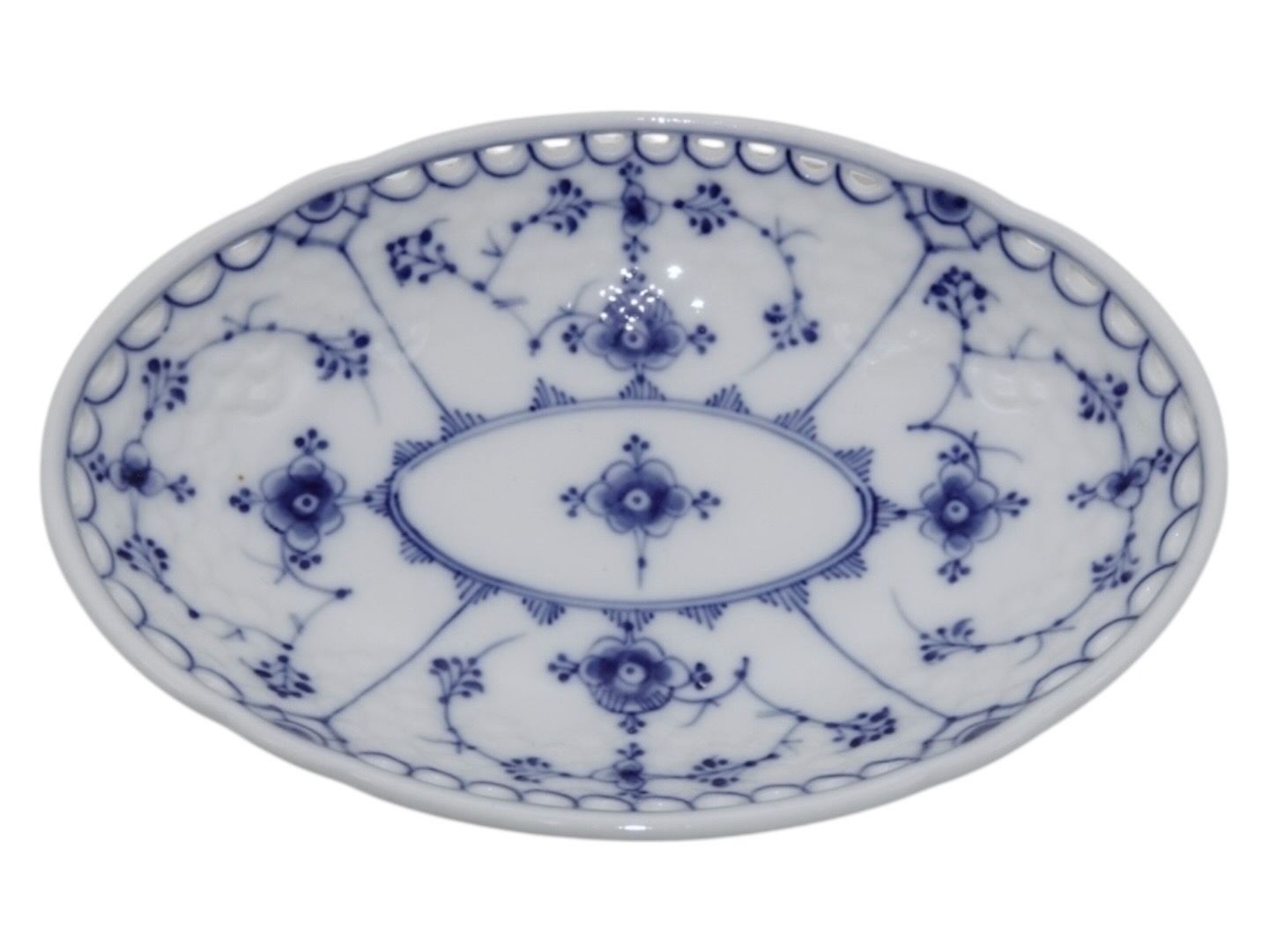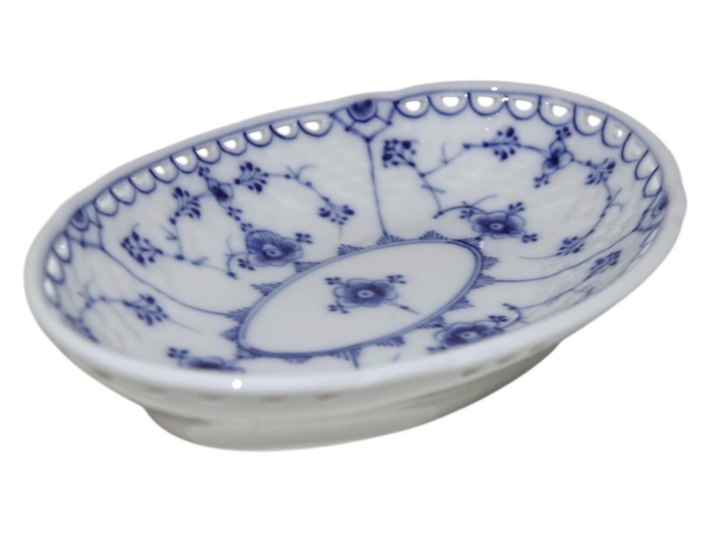 Beskrivelse: Bing & Grøndahl Blåmalet / Musselmalet, sjældent set mini fad med blondekant.