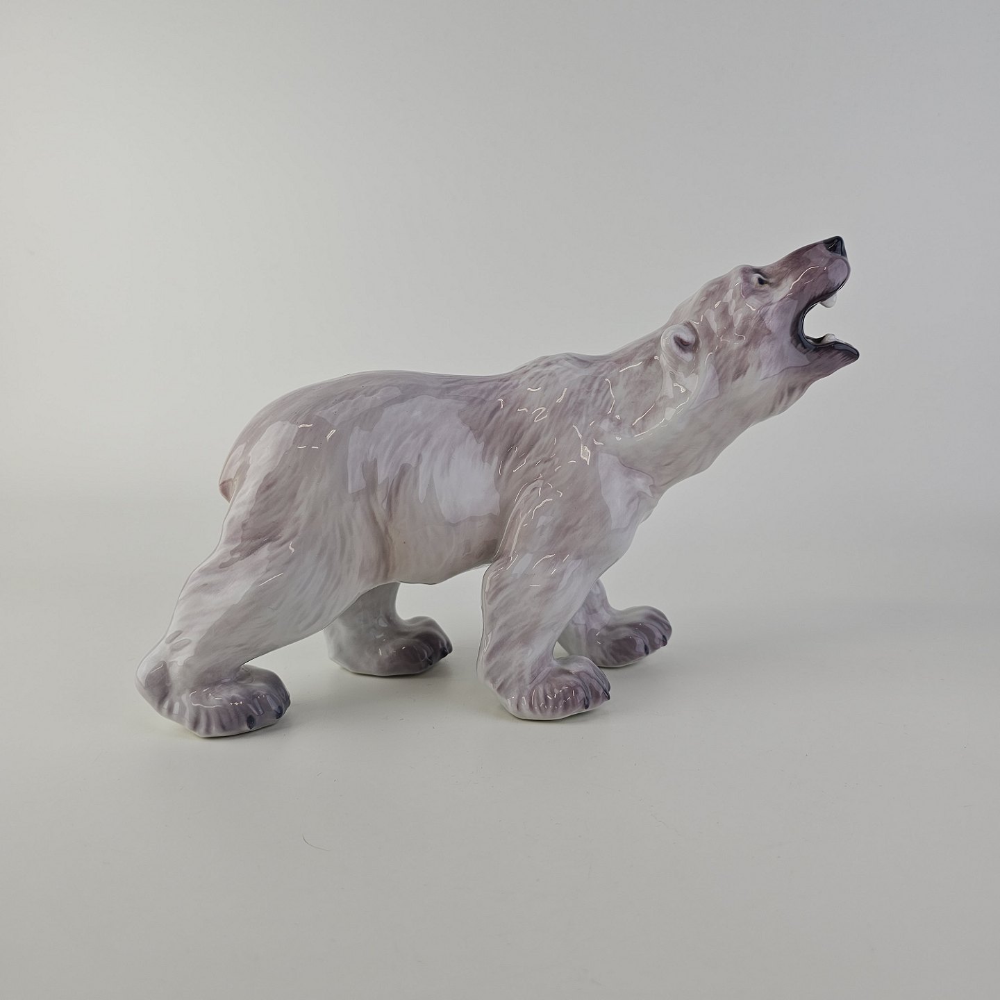 Beskrivelse: Figur i hvidt porcelæn med motiv af en brølende isbjørn