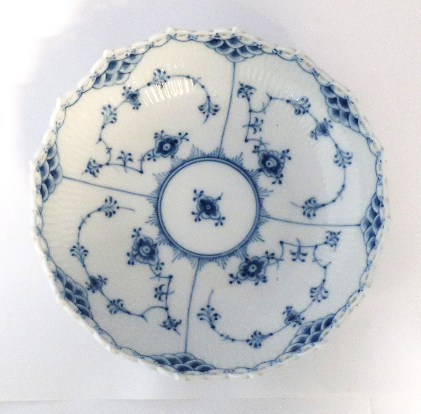 Royal Copenhagen. Musselmalet helblonde. Rund skål. Model 577 (1018). Højde 6 cm. Diameter 21 cm. (2 sortering)