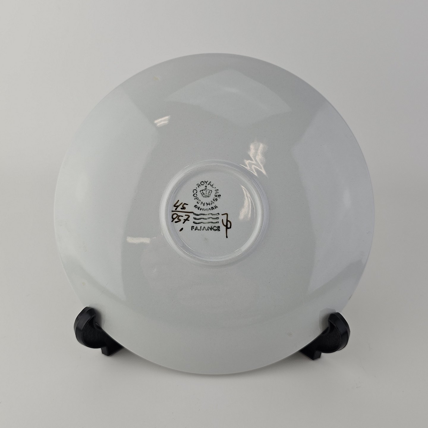 Beskrivelse: Tekop med underkop i fajance fra stellet Brun Tranquebar fra år 1919