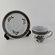 Beskrivelse: Moccakop med underkop i fajance fra stellet Brun Tranquebar fra år 1919