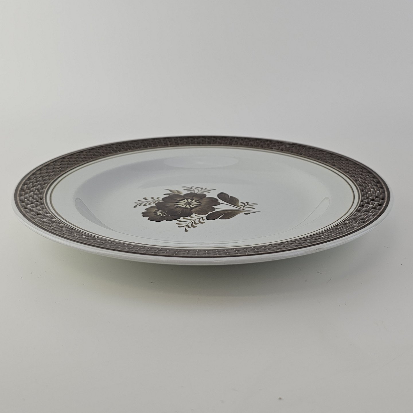 Beskrivelse: Frokosttallerken i fajance fra stellet Brun Tranquebar fra år 1919
