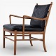 PJ 149 - 'Colonial Chair'-lænestol i palisander med hynder i patineret, sort læder. Mærket fra producent.