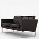 CH 102 - 2 pers. sofa i mørkebrunt, patineret semi-anilinlæder med stel i stål. Mærket fra producent.