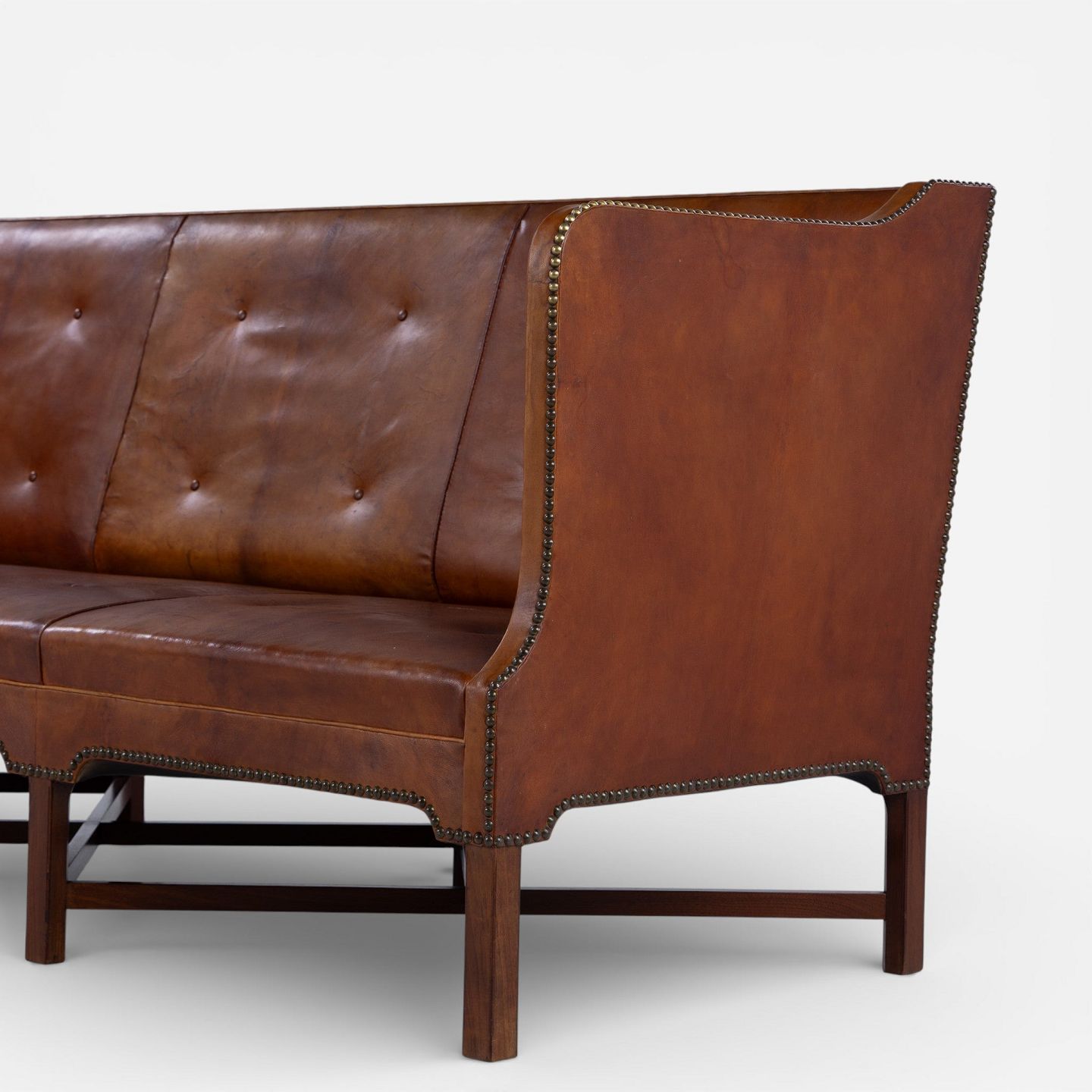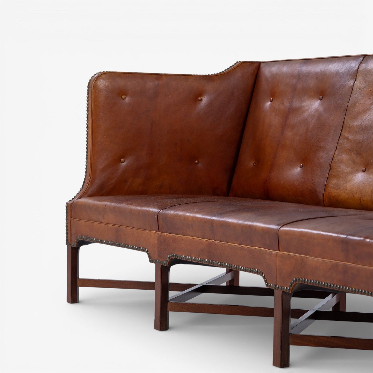 KK 4118 - 3 pers. sofa i patineret nigerskind på krydsstel i cuba-mahogni. Formgivet i 1930.