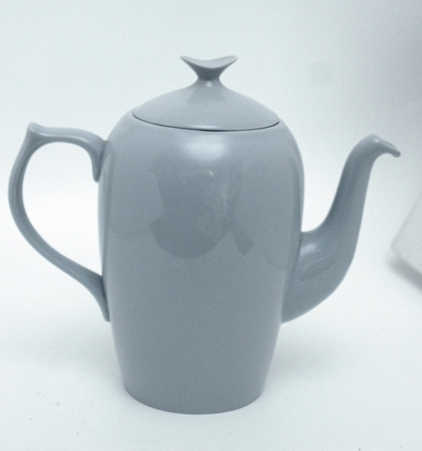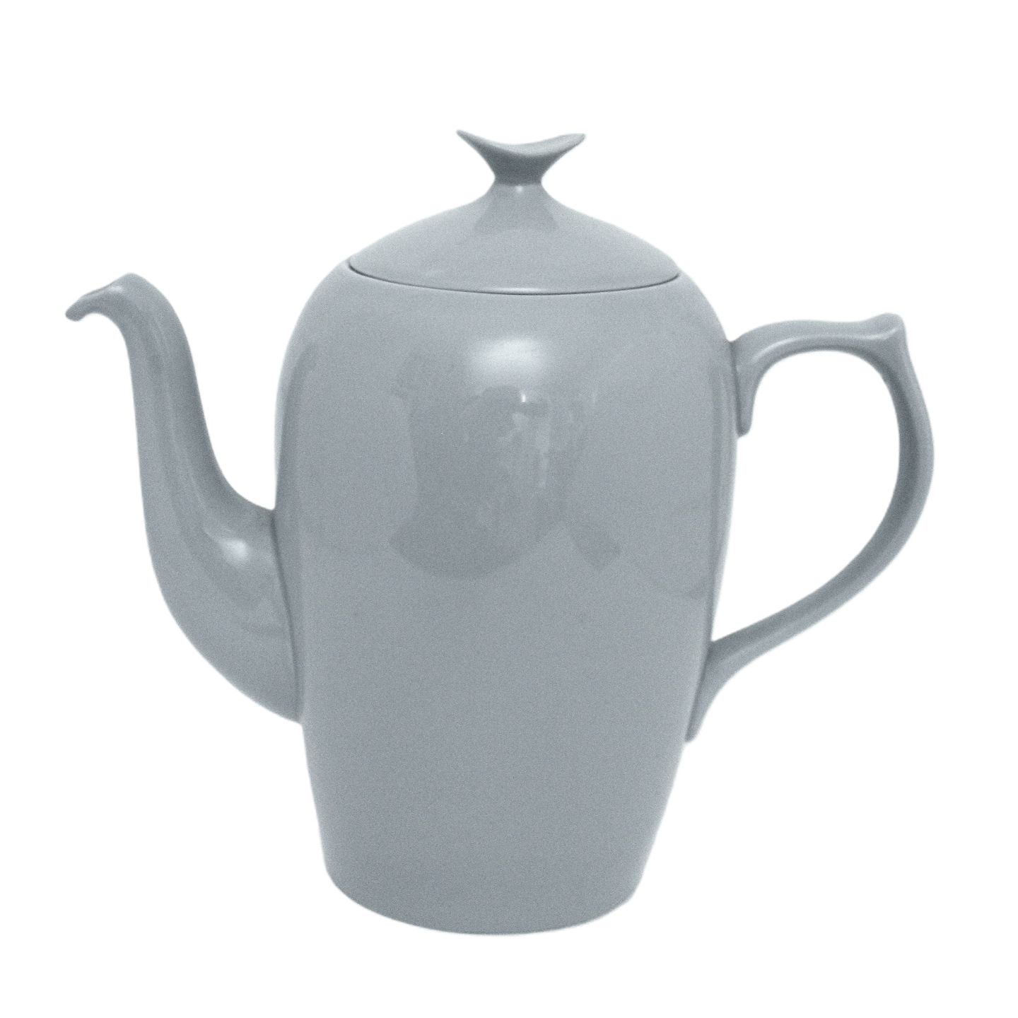 Beskrivelse: Bing & Grøndahl, Leda, Sart lysegrå/lyseblå stel. Kaffekande. Farven snyder meget, på billederne ser det lyseblåt ud og alt efter lyset ser det gråt ud.