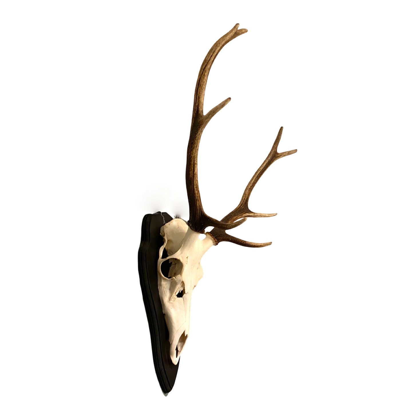 : Jagttrofæ af Kronhjort monteret på plade.