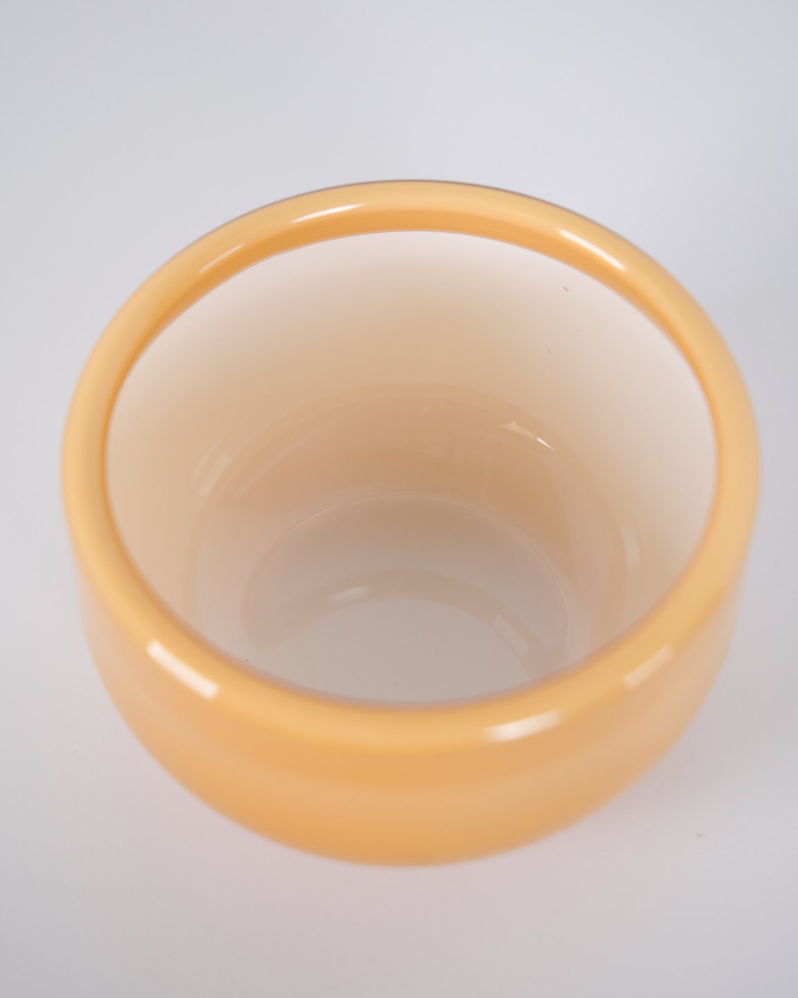 Beskrivelse: Glasskål fra Palet-serien designet af Michael Bang for Holmegaard. Skålen er udført i mundblæst glas i gul/karamel farvetone, kendetegnet ved Palet-seriens farvearbejde og enkle, funktionelle formsprog. Serien blev produceret hos Holmegaard i anden halvdel af det 20. århundrede og er i dag efterspurgt inden for dansk glasdesign.