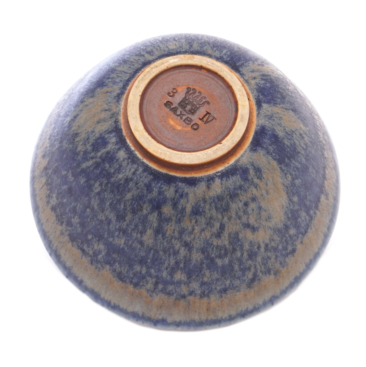 Saxbo skål med blågrå glasur model 3. Signeret Saxbo. H: 7,7cm. D: 15,5cm