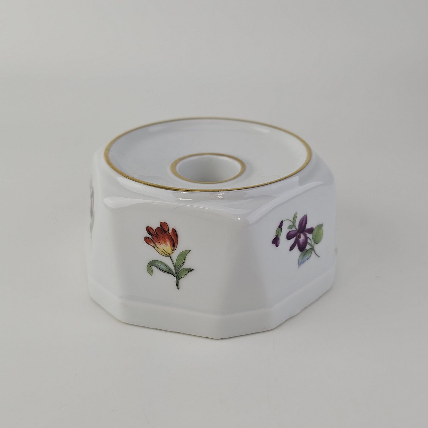 Beskrivelse: Lysestage i porcelæn fra stellet Saksisk blomst