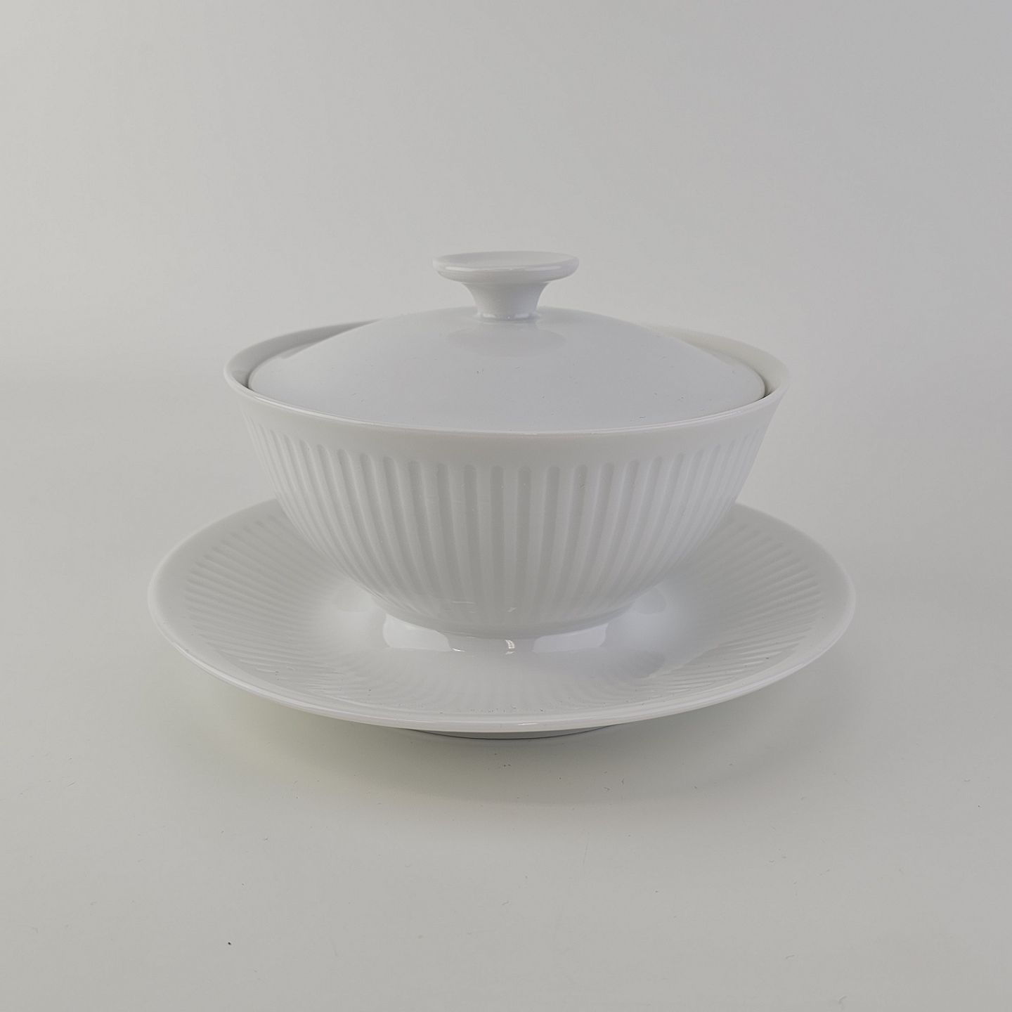 Georgiana er stel i hvidt porcelæn med riflet mønster