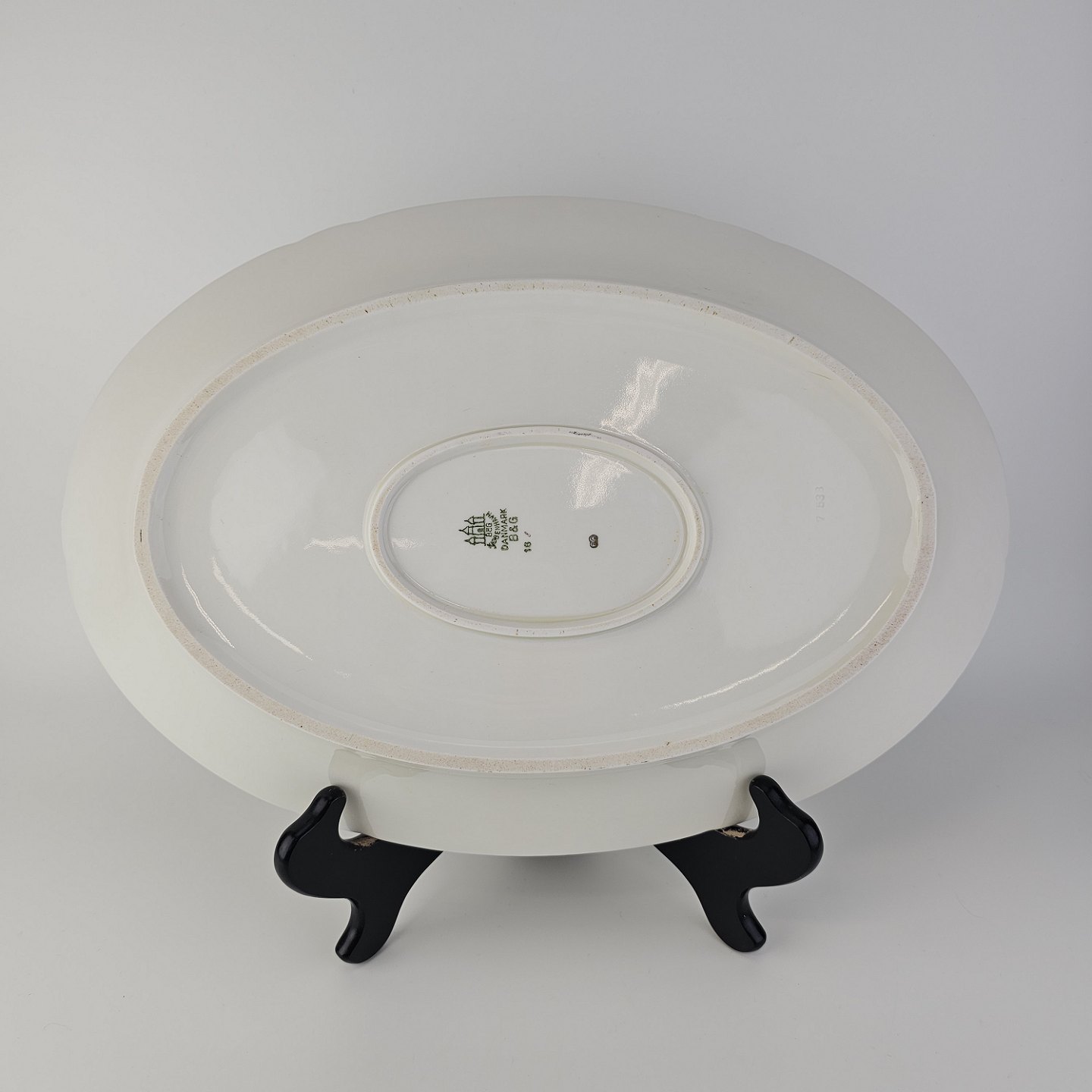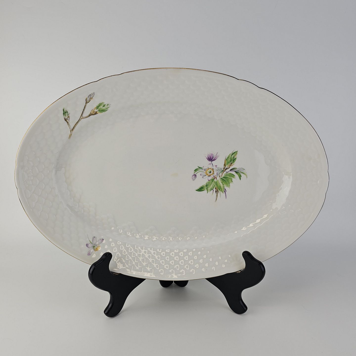 Beskrivelse: Ovalt fad i porcelæn fra stellet Frigga Anemone