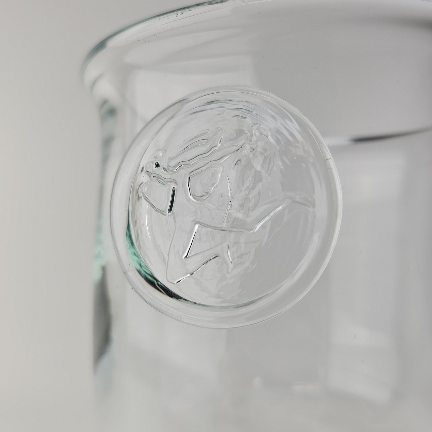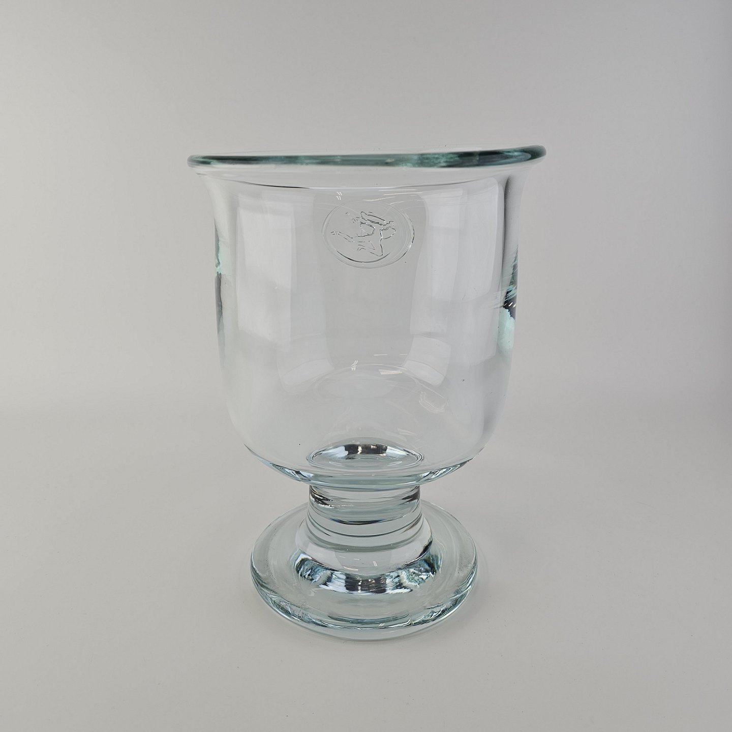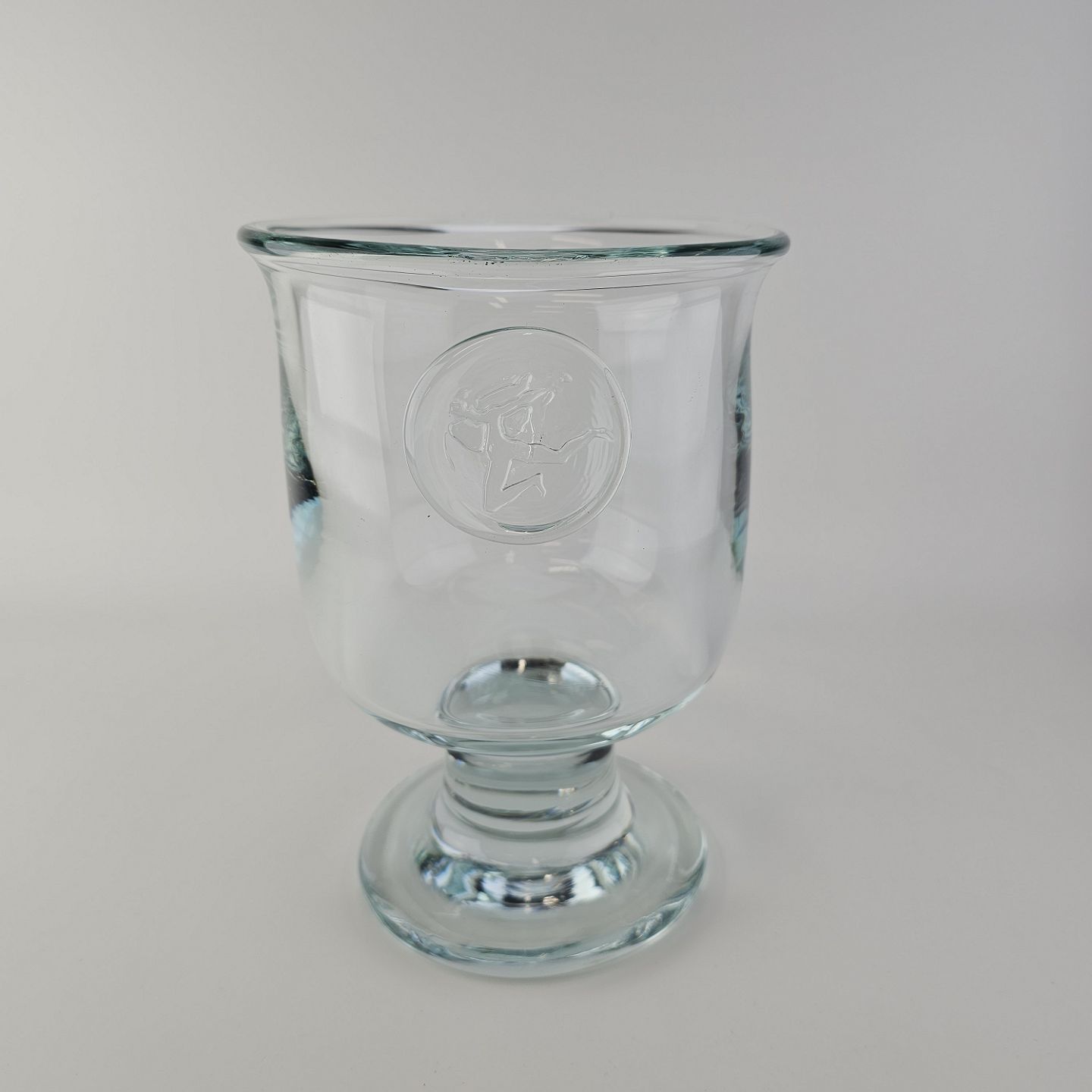 Beskrivelse: Pokal i glas produceret i forbindelse med Privatbankens 125 års jubilæum. Pokalen er prydet med et segl på, der forestiller en Hermesfigur og har kalkform