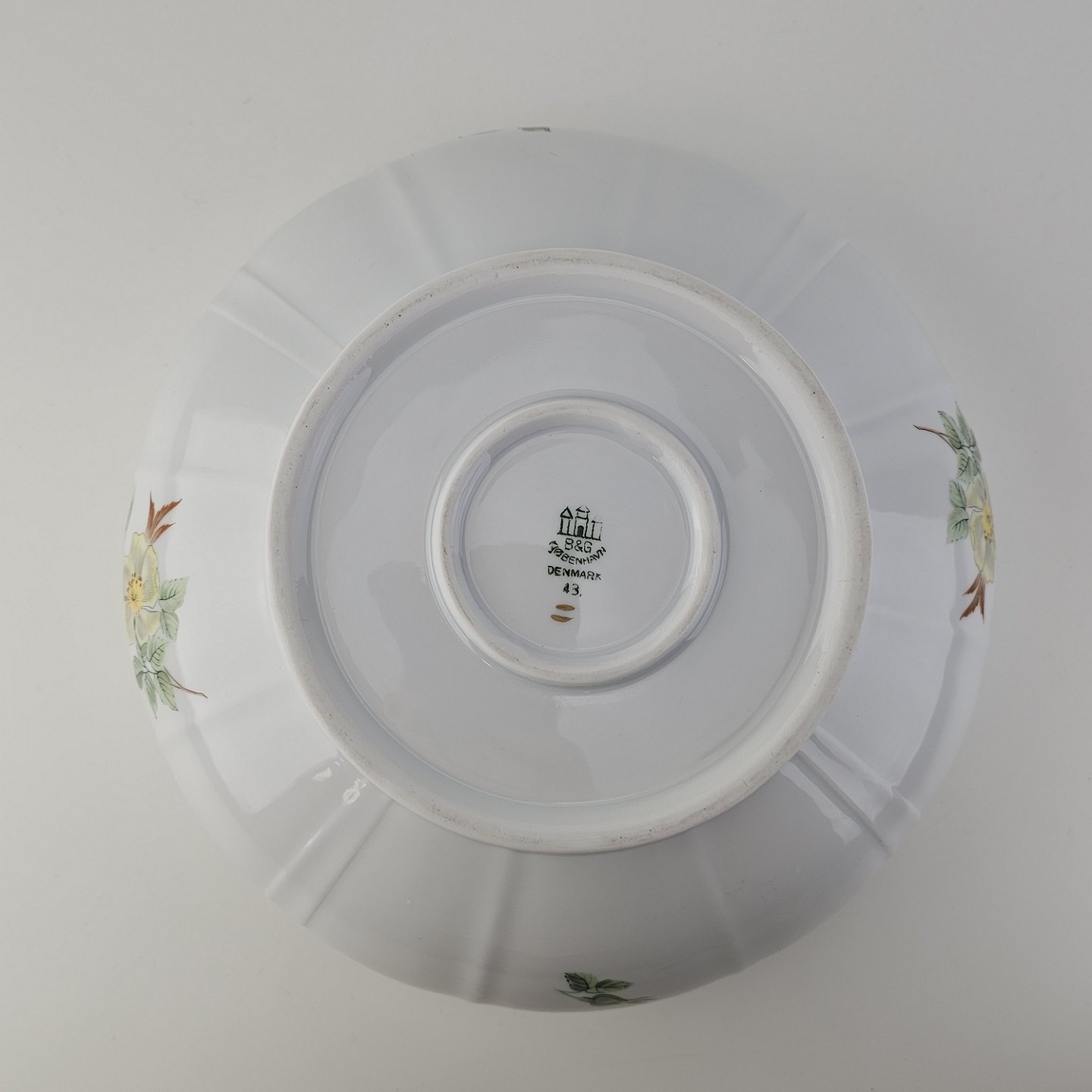 Beskrivelse: Kartoffelskål i porcelæn fra stellet Klitrose. Nr. 43