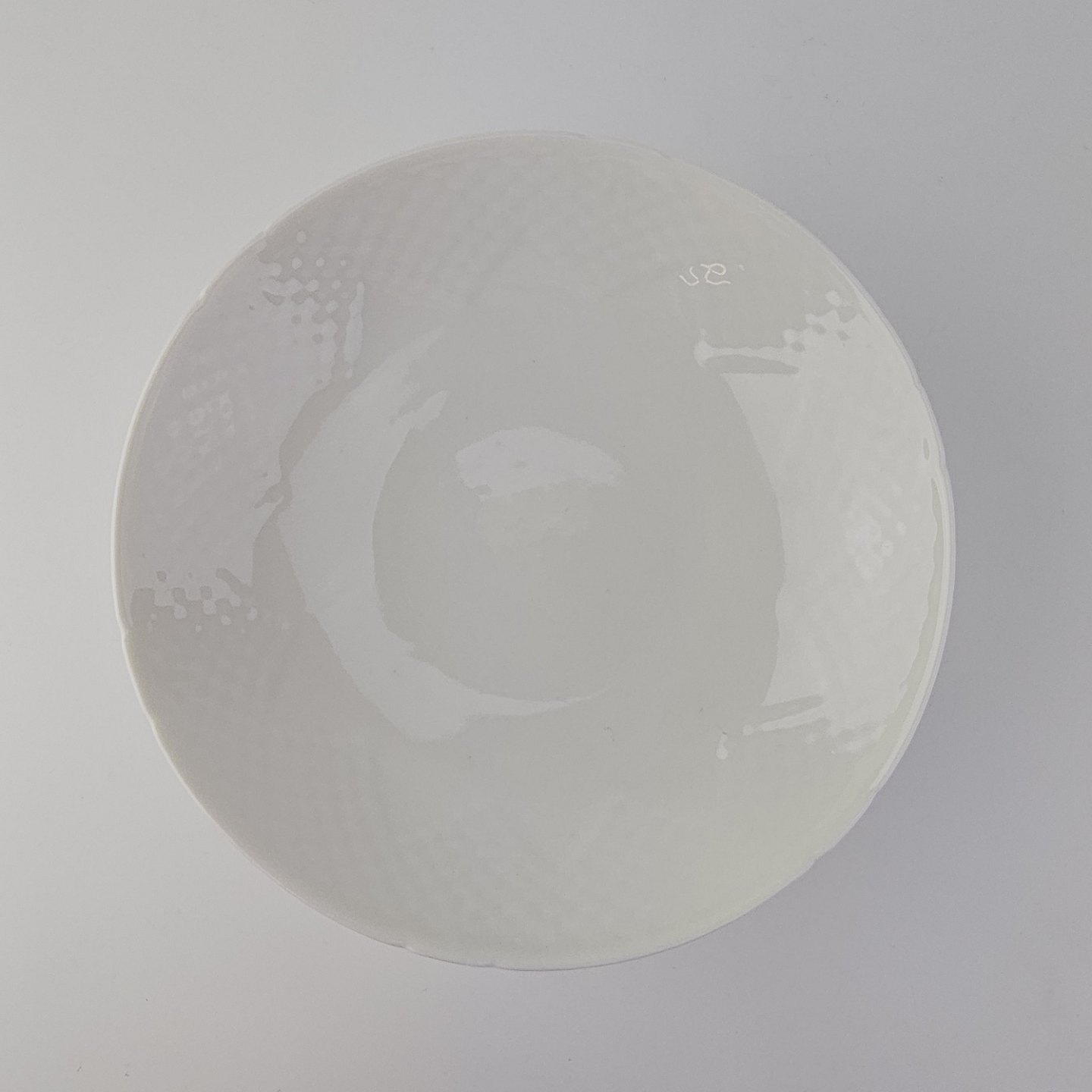 Elegance er cremefarvet glaseret porcelæn med skæl mønster