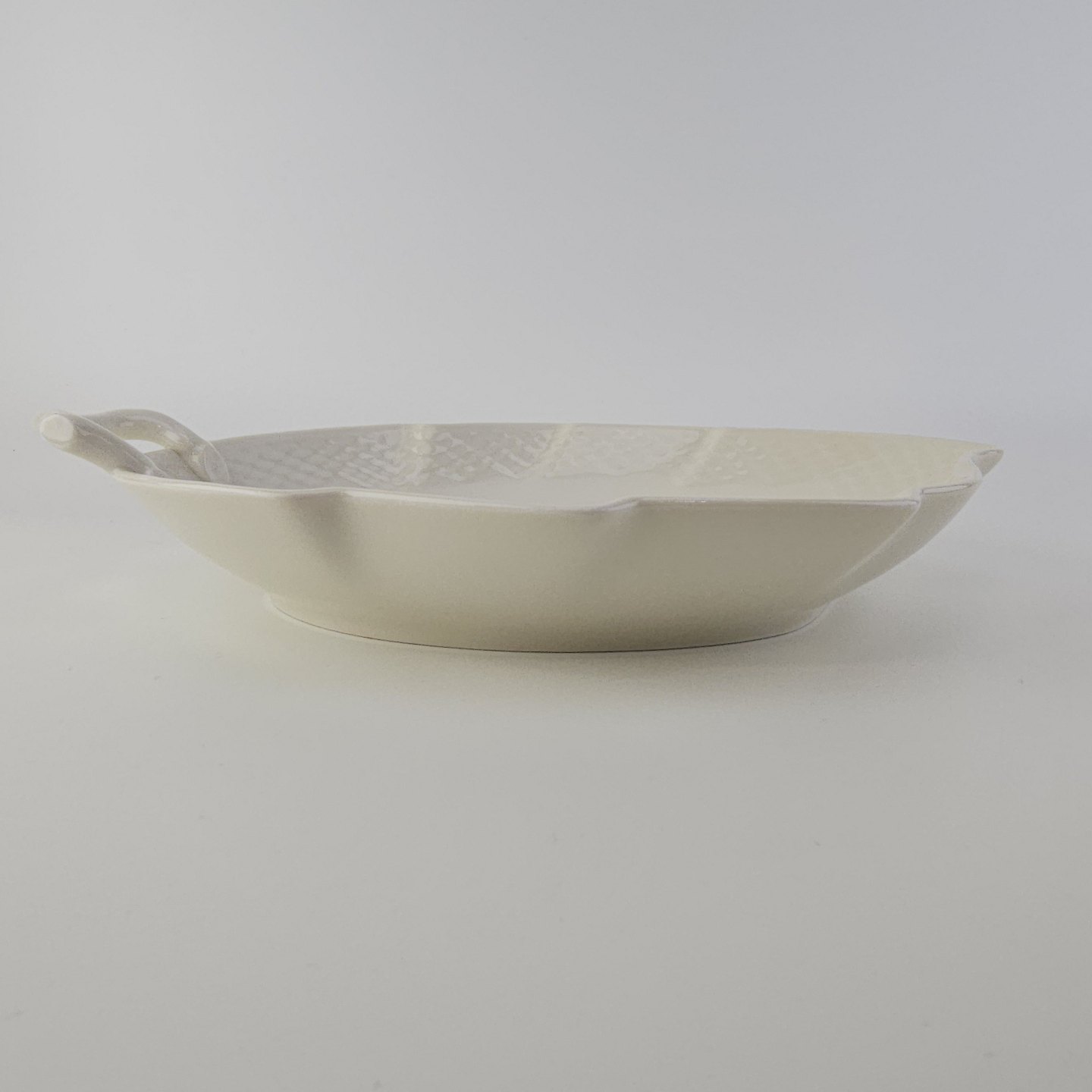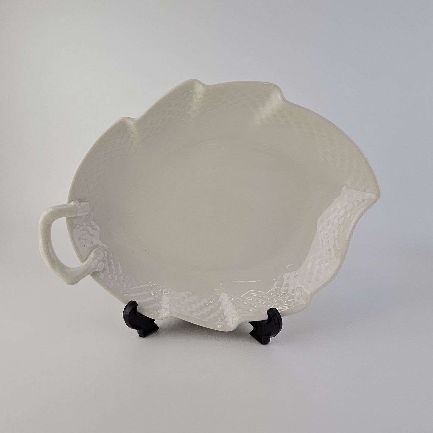 Beskrivelse: Bladformet fad fra stellet Elegance cremefarvet