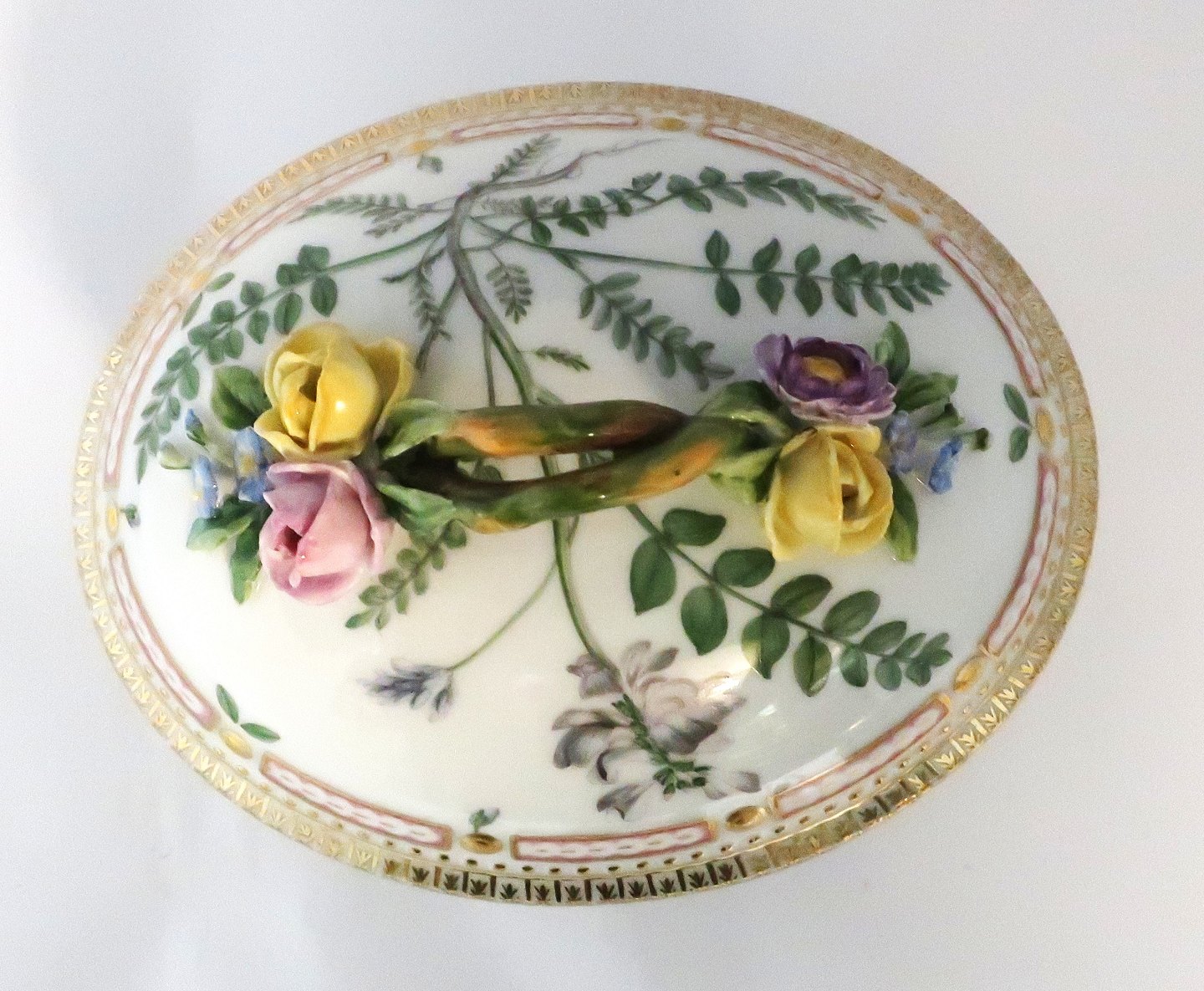 Royal Copenhagen. Flora Danica. Lille Terrin / Sukkerskål. Model 3582. Længde 15,5 cm. (1 sortering). Orobus tuberosus L & Astragalus alpinus