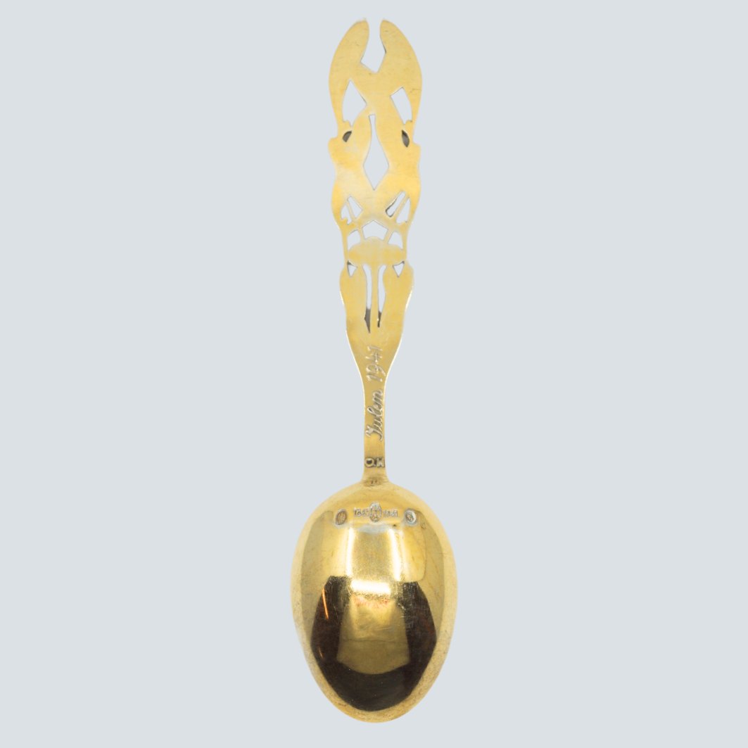 Ole Hagen for A. Michelsen; Juleske 1941. Juleske af forgyldt sterling sølv med emalje. Design af Ole Hagen.