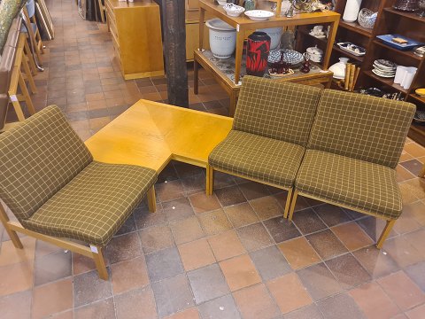 Beskrivelse: Ole Gjerløv Knudsen/ Torben Lind sæt af 3 Moduline lounge stole udført i eg og betrukket med uldstof. Fremstillet hos France & Søn ca. 1970'erne.
