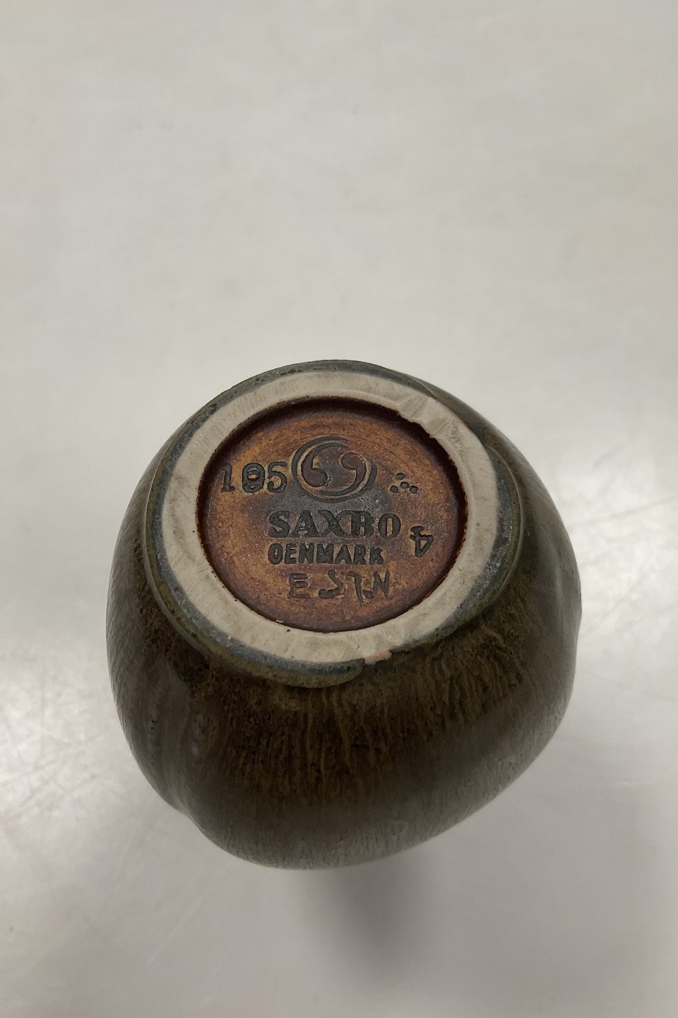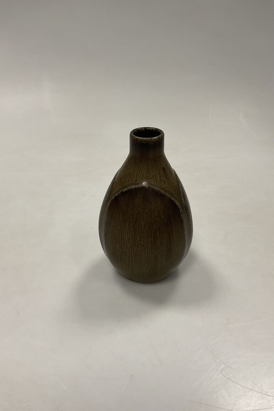 Beskrivelse: Saxbo vase af Eva Stæhr Nielsen i harepels glasur No. 195